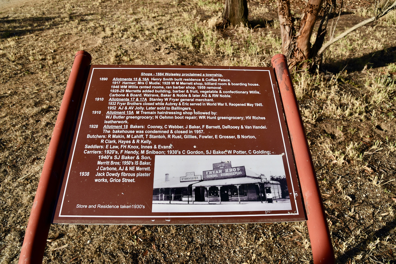 There is a Wolseley Historical Walk brochure which can be obtained from the Bordertown Visitor Information Centre. I have attached a copy below.