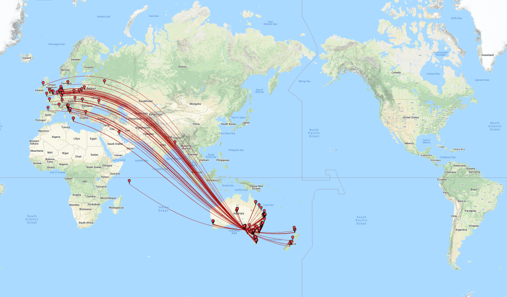 The map below shows my contacts on Australia Day, including the DX and the QSOs I made during the contest.