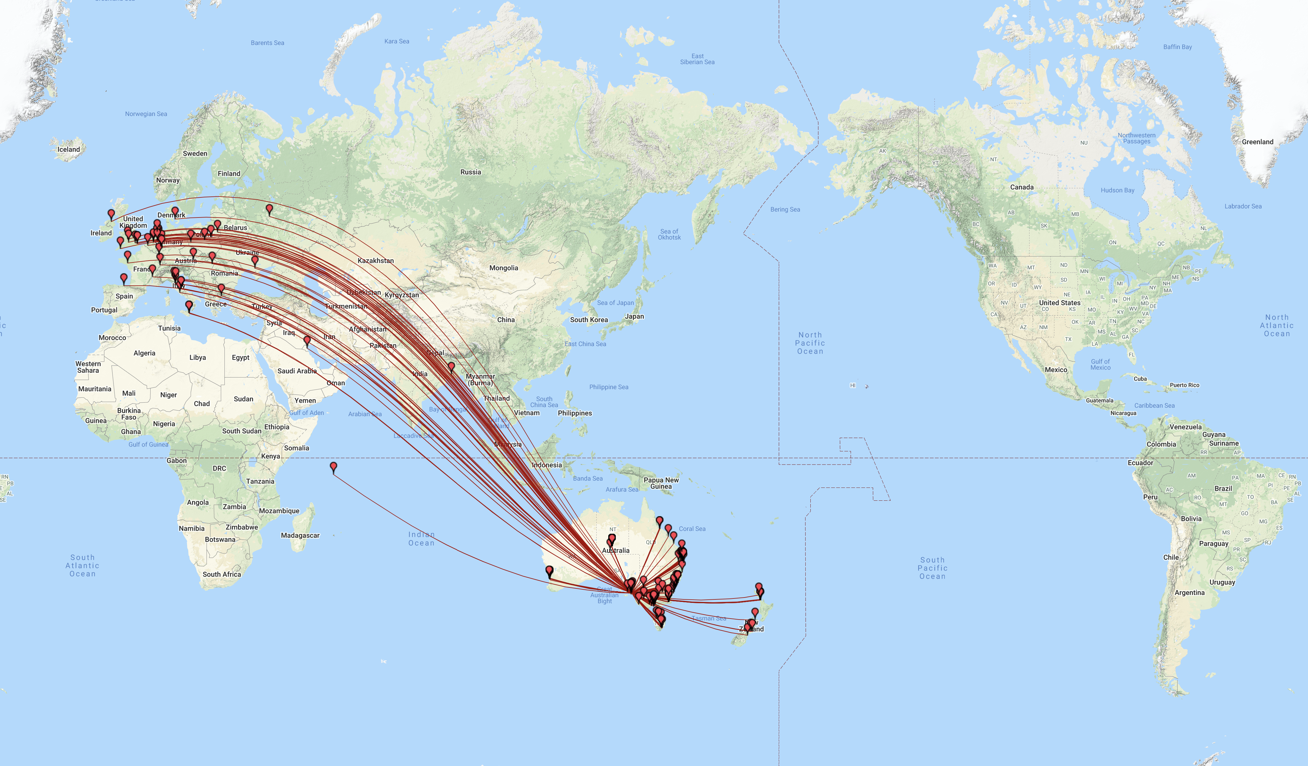 The map below shows my contacts on Australia Day, including the DX and the QSOs I made during the contest.