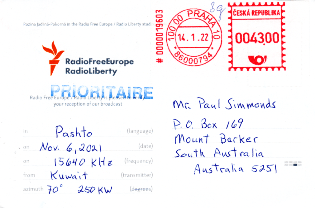 Yesterday in the mail I received a QSL card from Hope Radio Palau regarding my reception of their station on 12th December 2021.