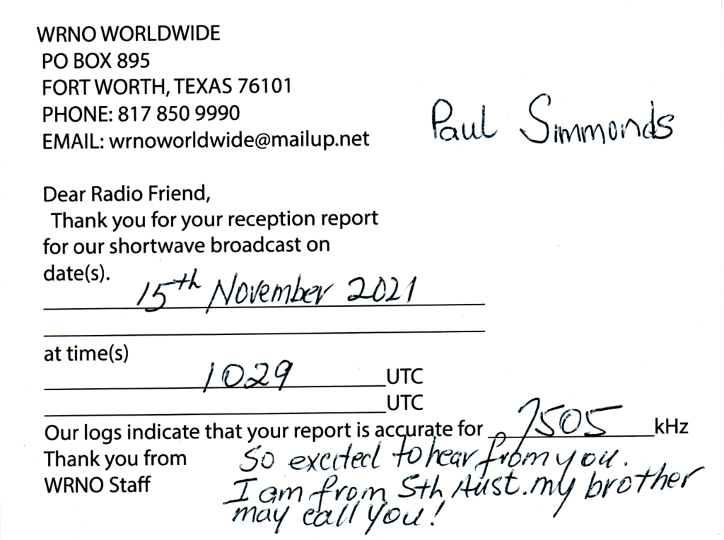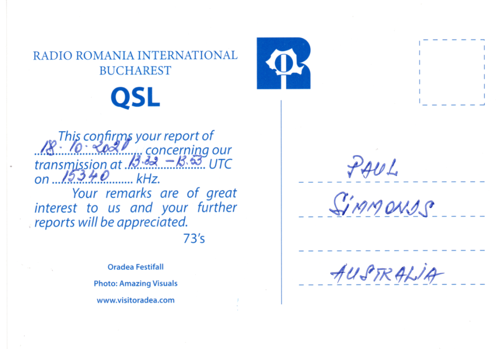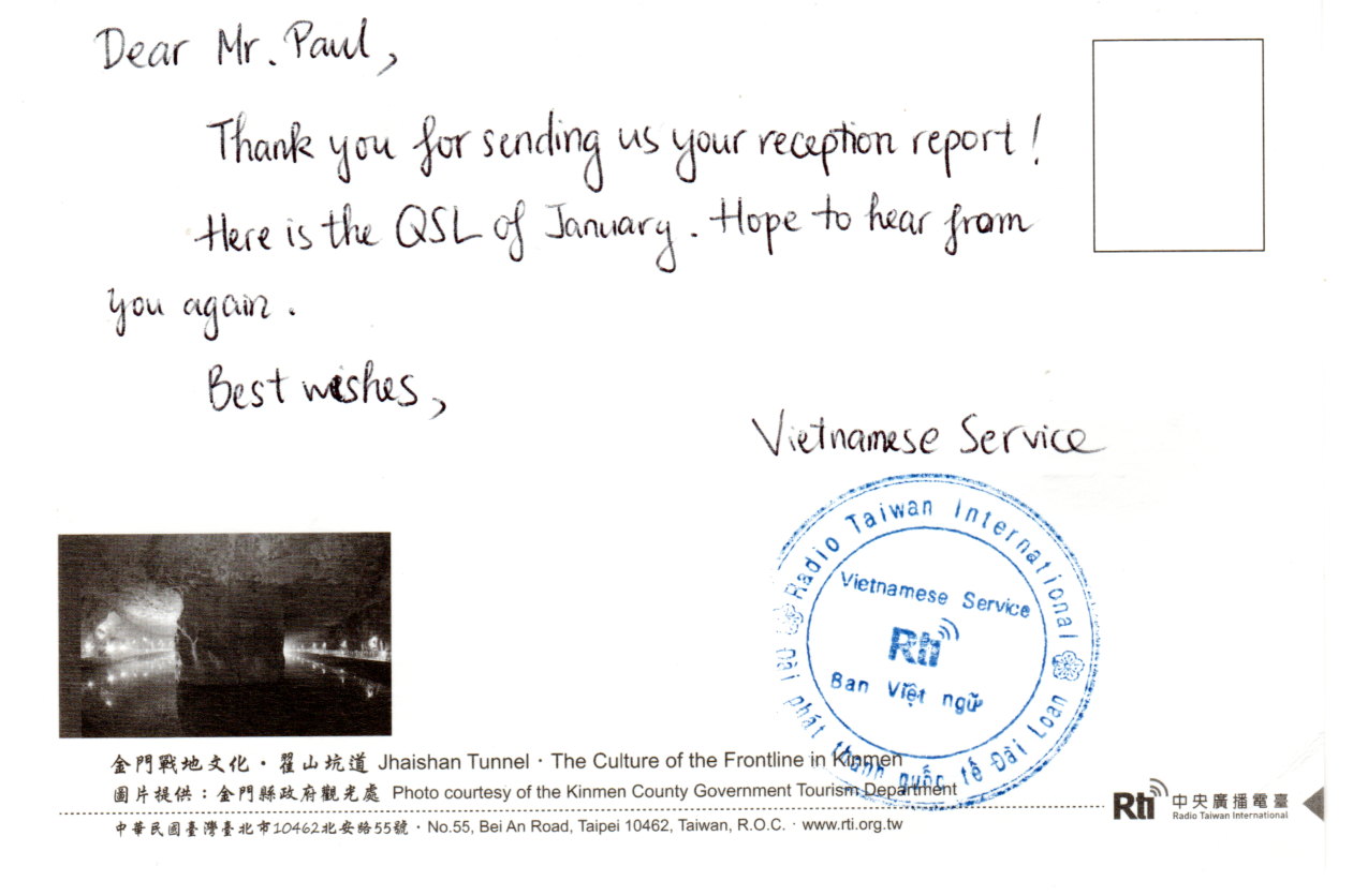 And the third QSL card in the mail this week was from Radio Taiwan International. I tuned in to that station on 7th November 2021.