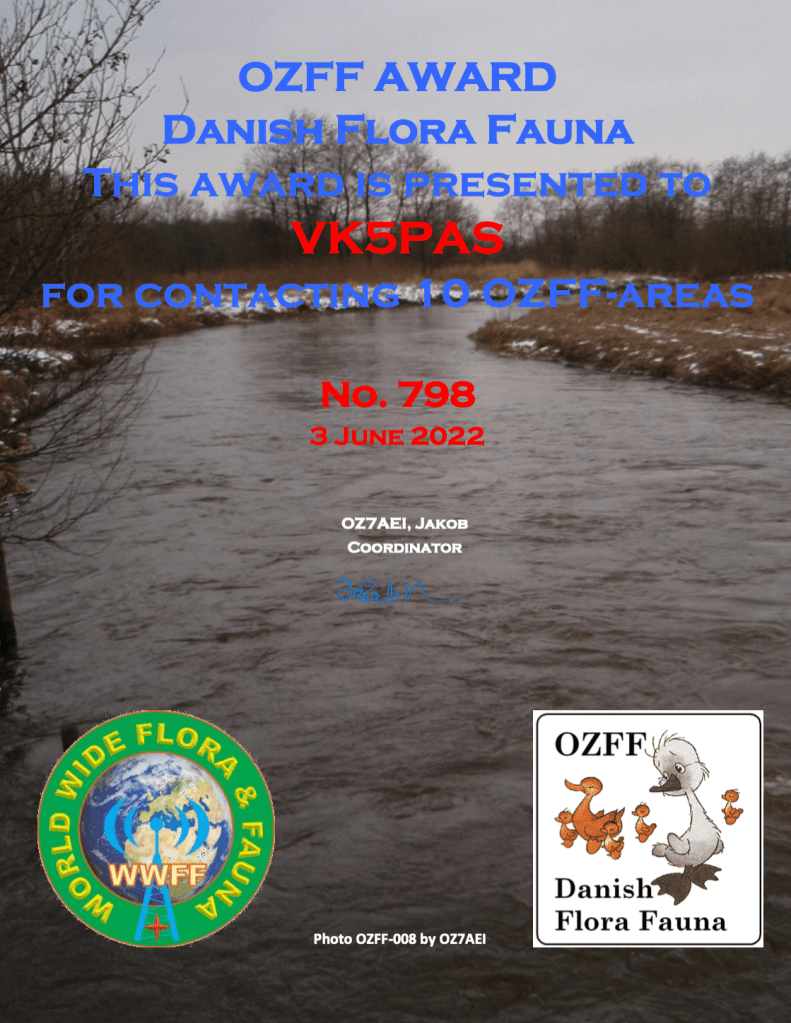 Just received via email, my latest WWFF certificate.