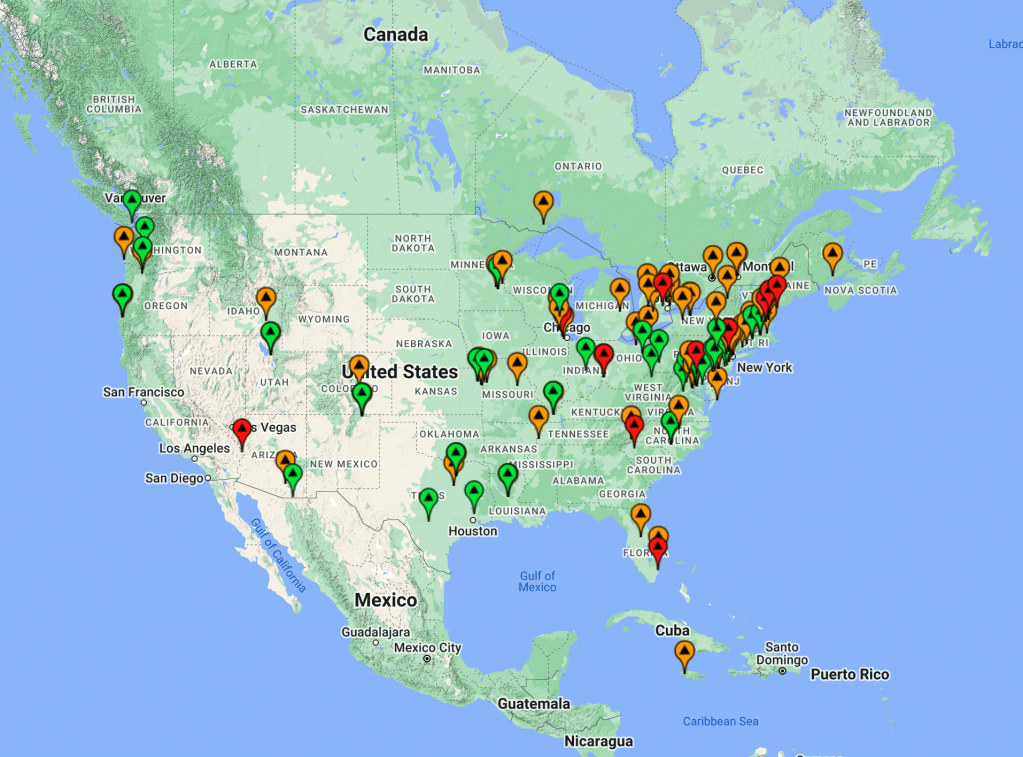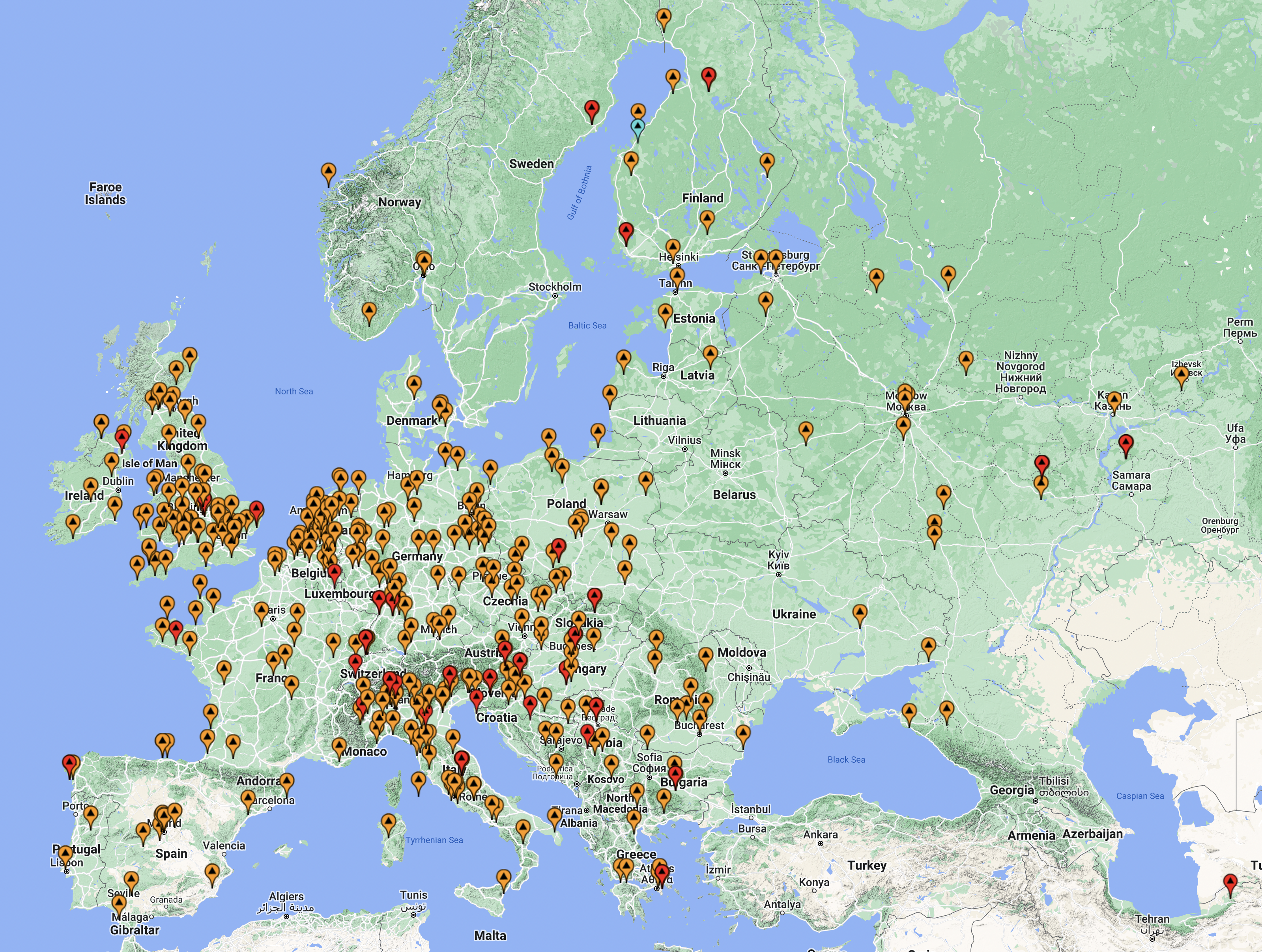 The map below shows my European/UK contacts (orange pins-20m, red pins – 40m).