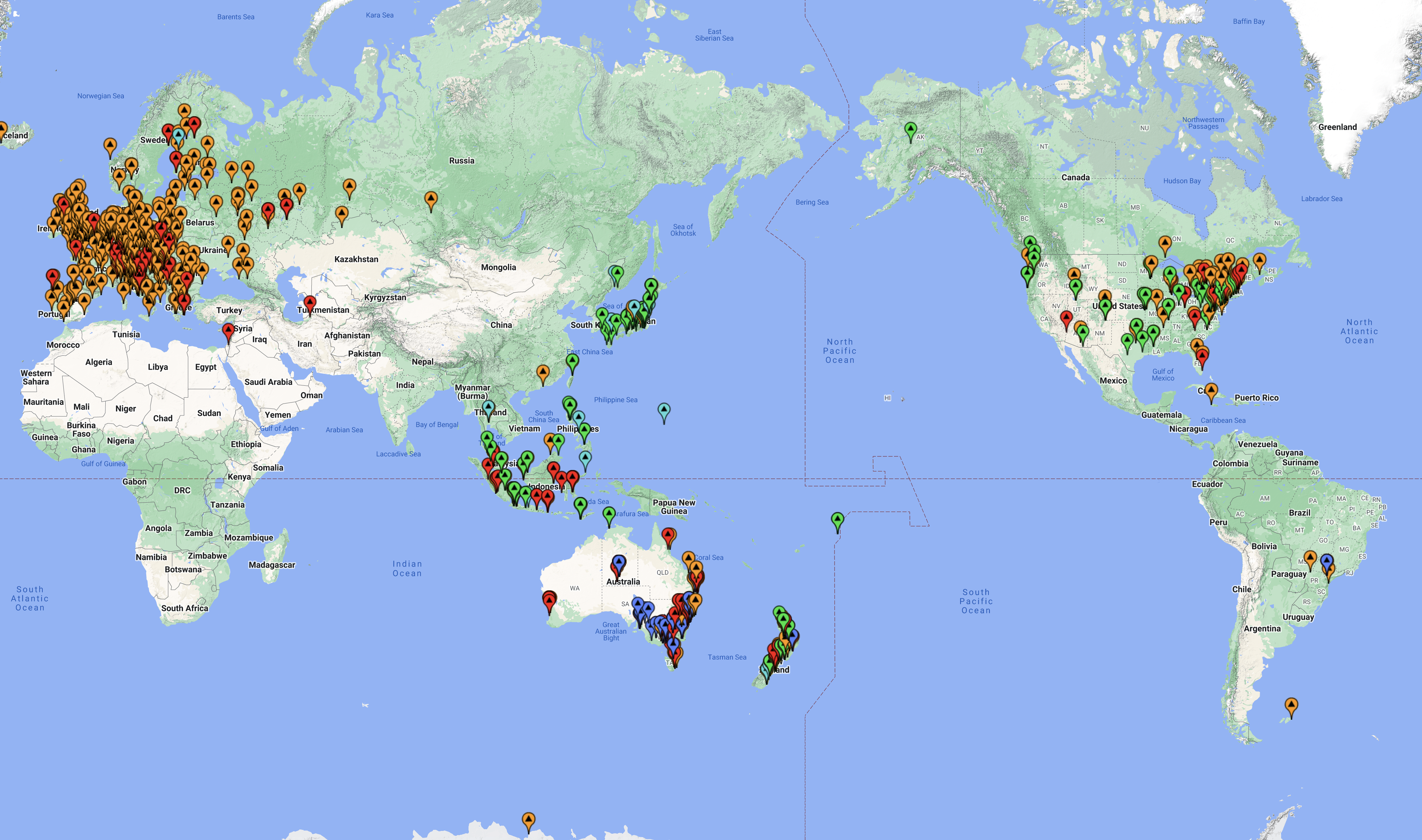 The map below shows my contacts around the world.