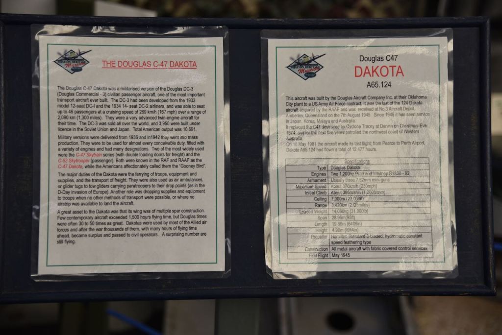 We then headed back to Perth where we visited the Aviation Heritage Museum in Bull Creek. We spent the majority of the afternoon there enjoying the many exhibits including 35 different aircraft. The highlight was the Avro Lancaster. Of the 7,377 Avro Lancasters built, 3,736 were lost during the War. Today 17 remain in complete form. Two can be found in Australia. One in Perth, and the other at the War Memorial in Canberra.