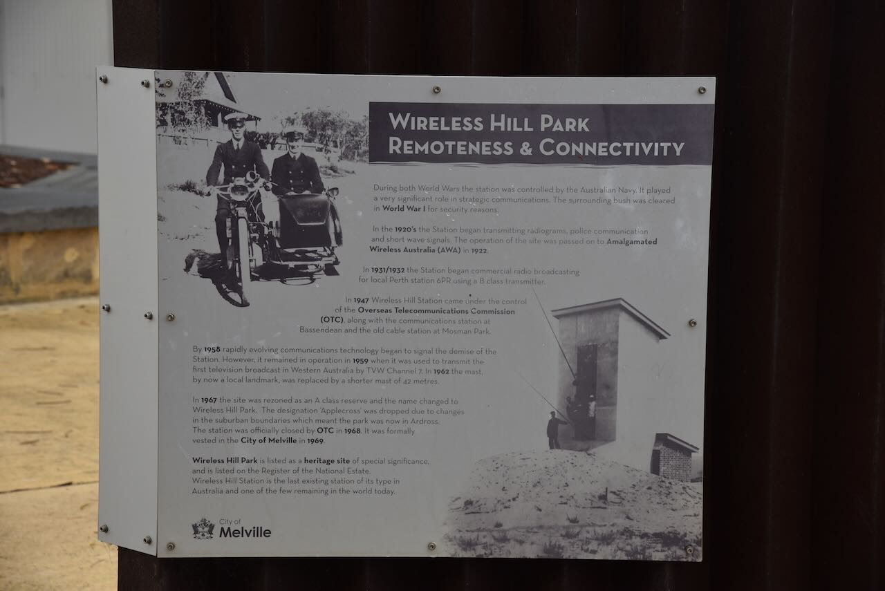 Andrew then took us to Wireless Hill which is a 40 hectare park in the suburb of Ardross. It is the location of the former Applecross Wireless Station. The West Australian VHF Group have a clubrooms at Wireless Hill.