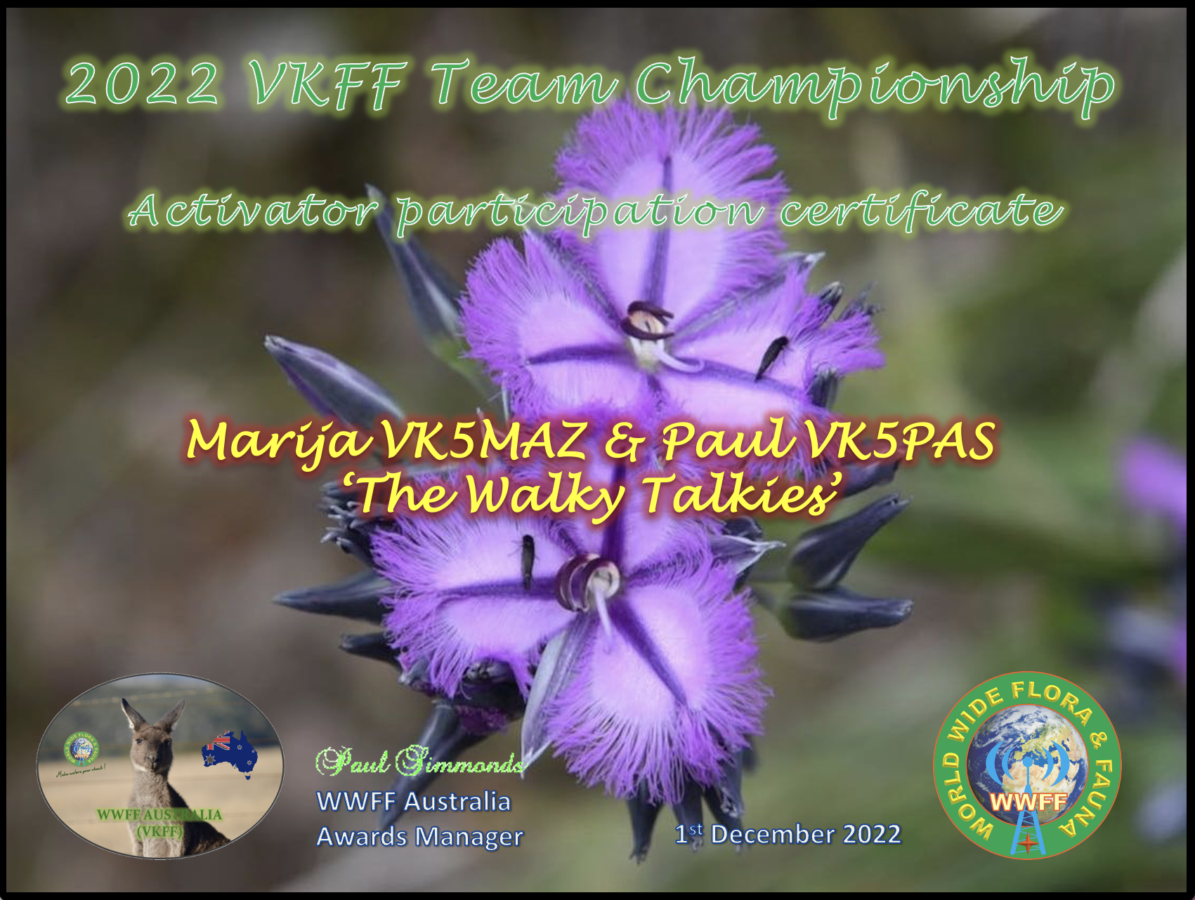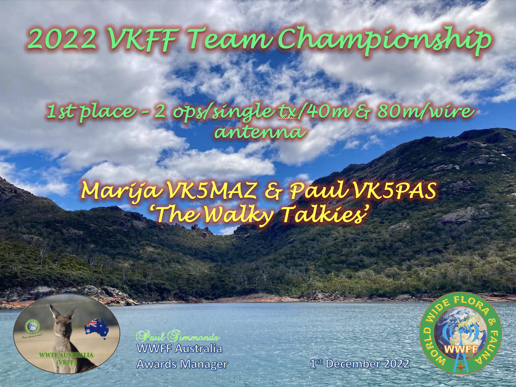More information on the 2022 VKFF Team Championship can be found at the WWFF Australia website at……