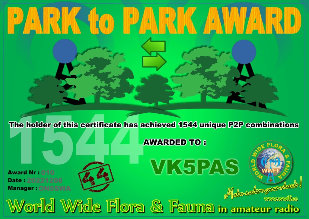 Thanks to all of the WWFF park Activators and park Hunters, and thanks to those at WWFF who organised the certificates.