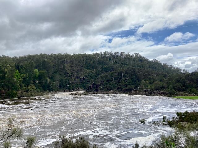 Due to all of the recent heavy rain in Tasmania, the Gorge was in flood during our visit, with an enormous amount of water flowing down the South Esk River.