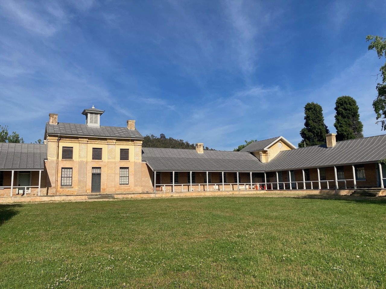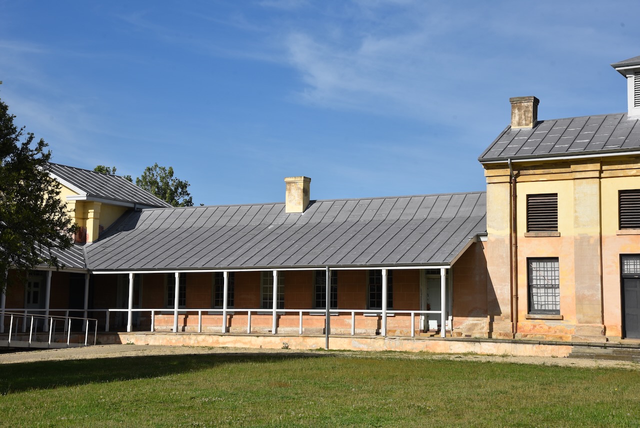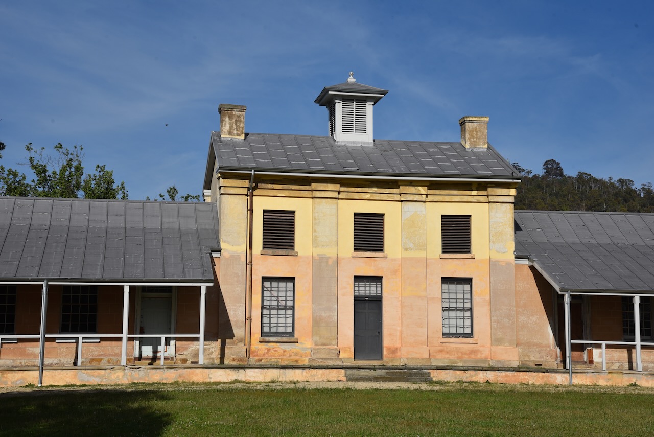 We doubled back along the Highway to the little town of Hamilton. I had wanted to see some of the many historic buildings that are in the town. These include the old school house which was built in 1858 by convict stonemasons. It was designed to allow the Headmaster to live in the room above the central staircase, while the children, according to their sex, entered the school from different doors.