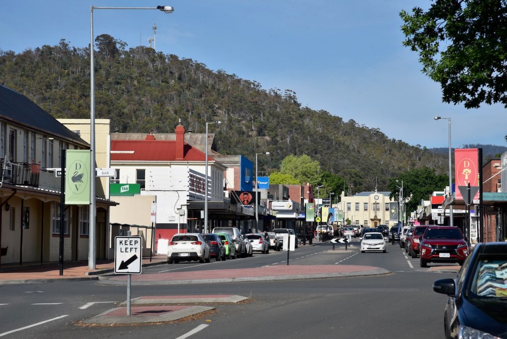 We stopped briefly at the Ellendale road stop admiring the view of Mount Field National Park. Between 1860 and 1970 Ellendale was the home of a thriving timber industry. Swan timbers from Ellendale have been sent to many parts of the world and are included in furniture at Parliament House.