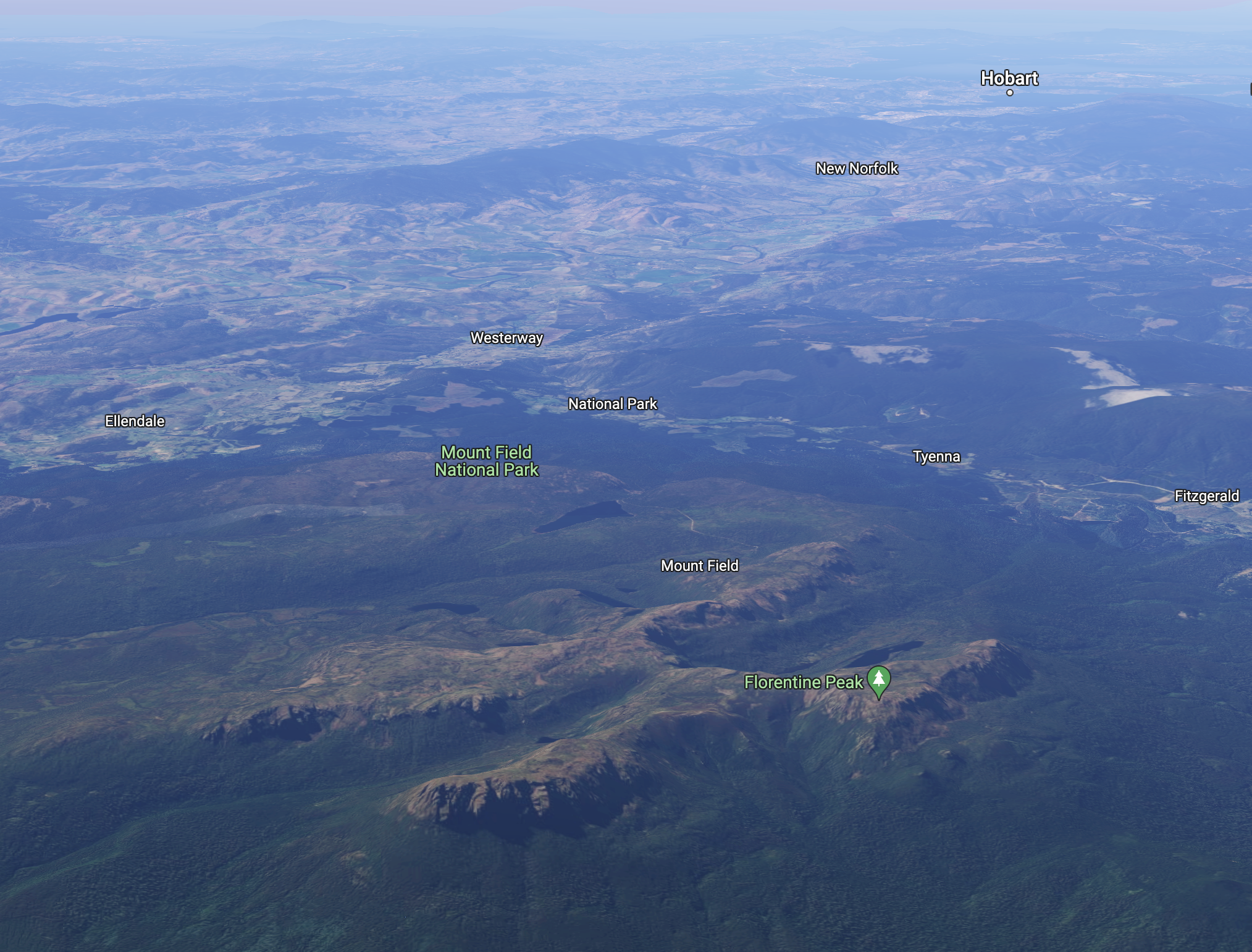 Above:- The Cradle Mountain lake St Clair National Park. Image c/o GoogleEarth.
