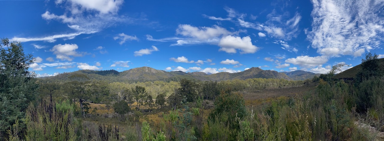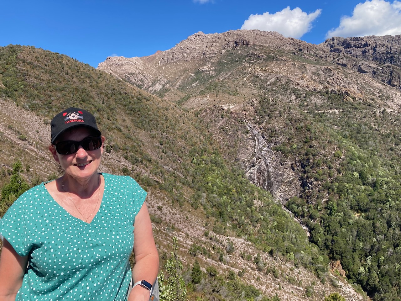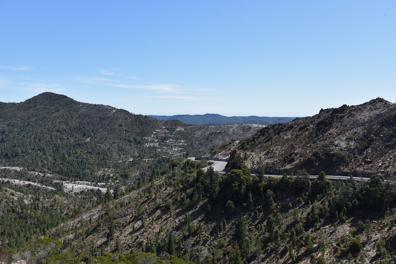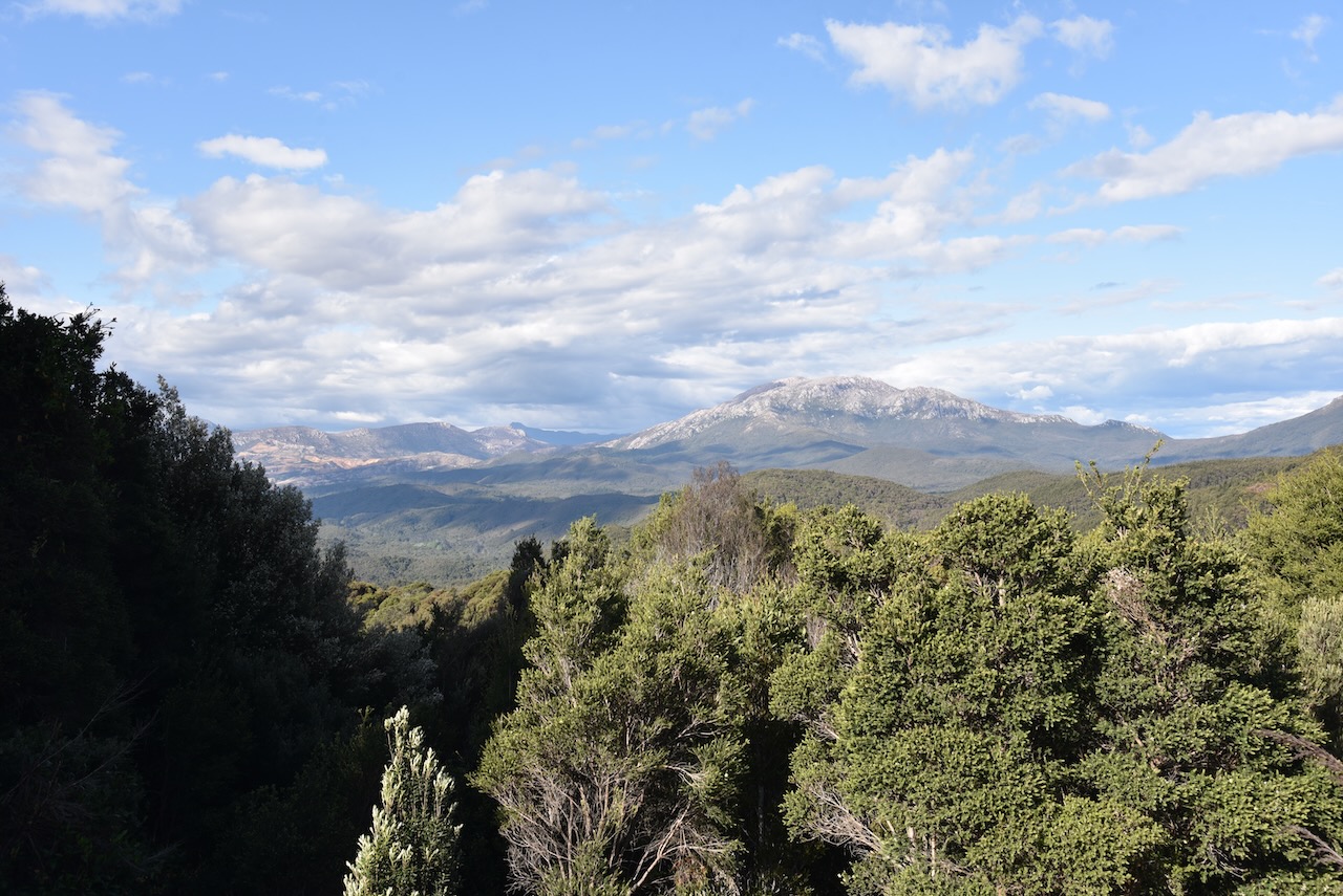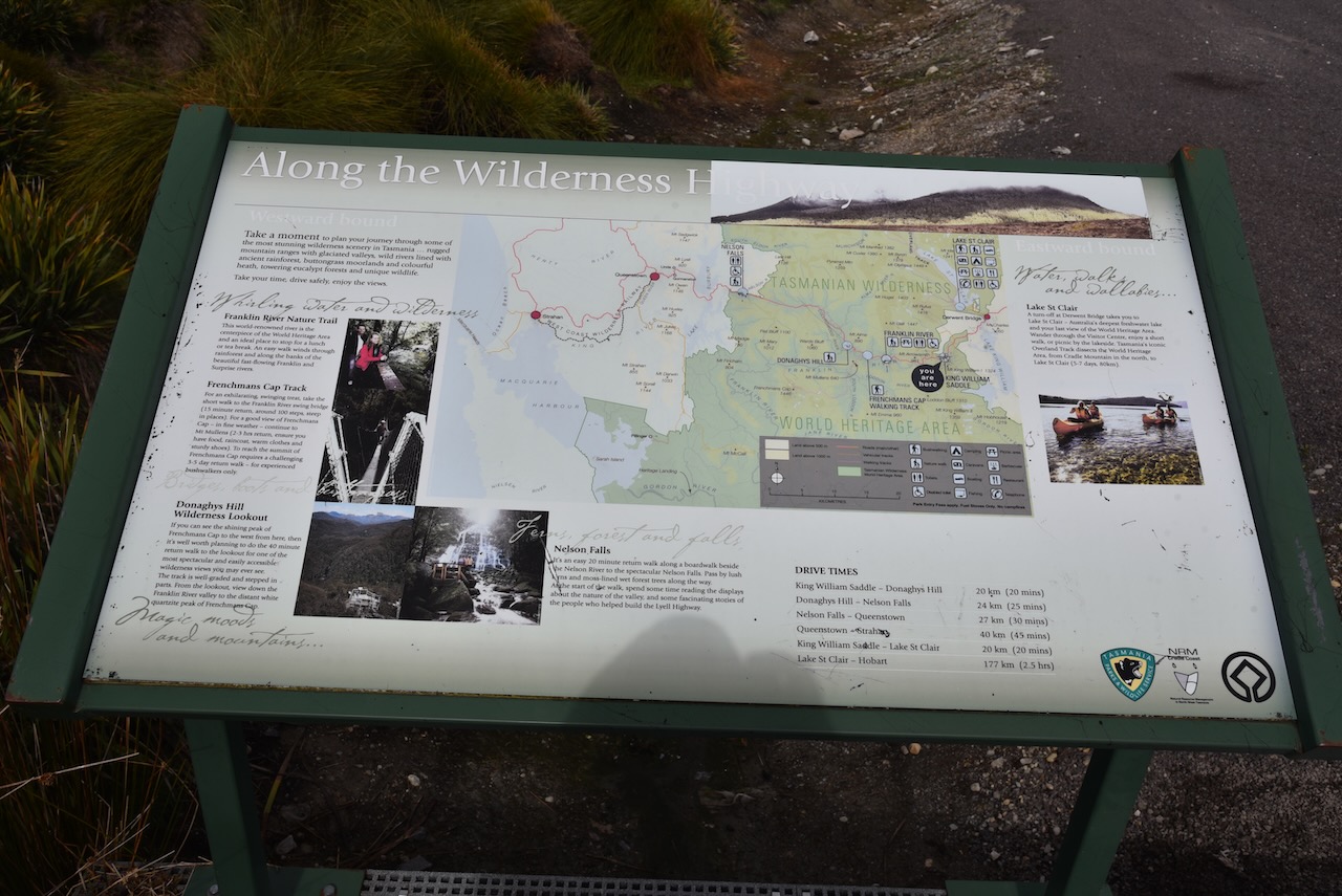 Further along the Lyell Highway we stopped at the Rindeena Lookout, also known as Hall’s Creek lookout.