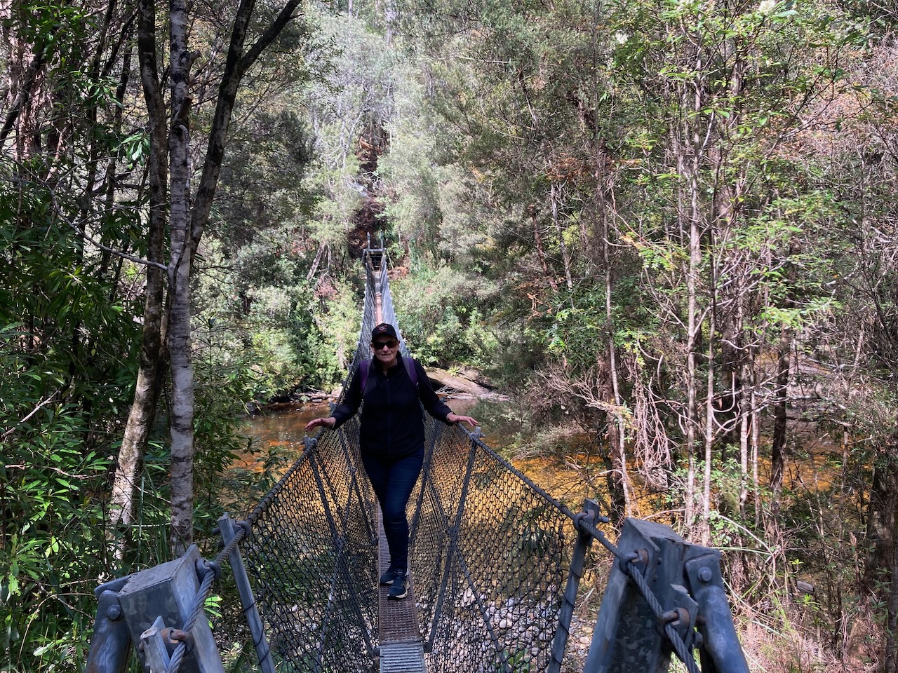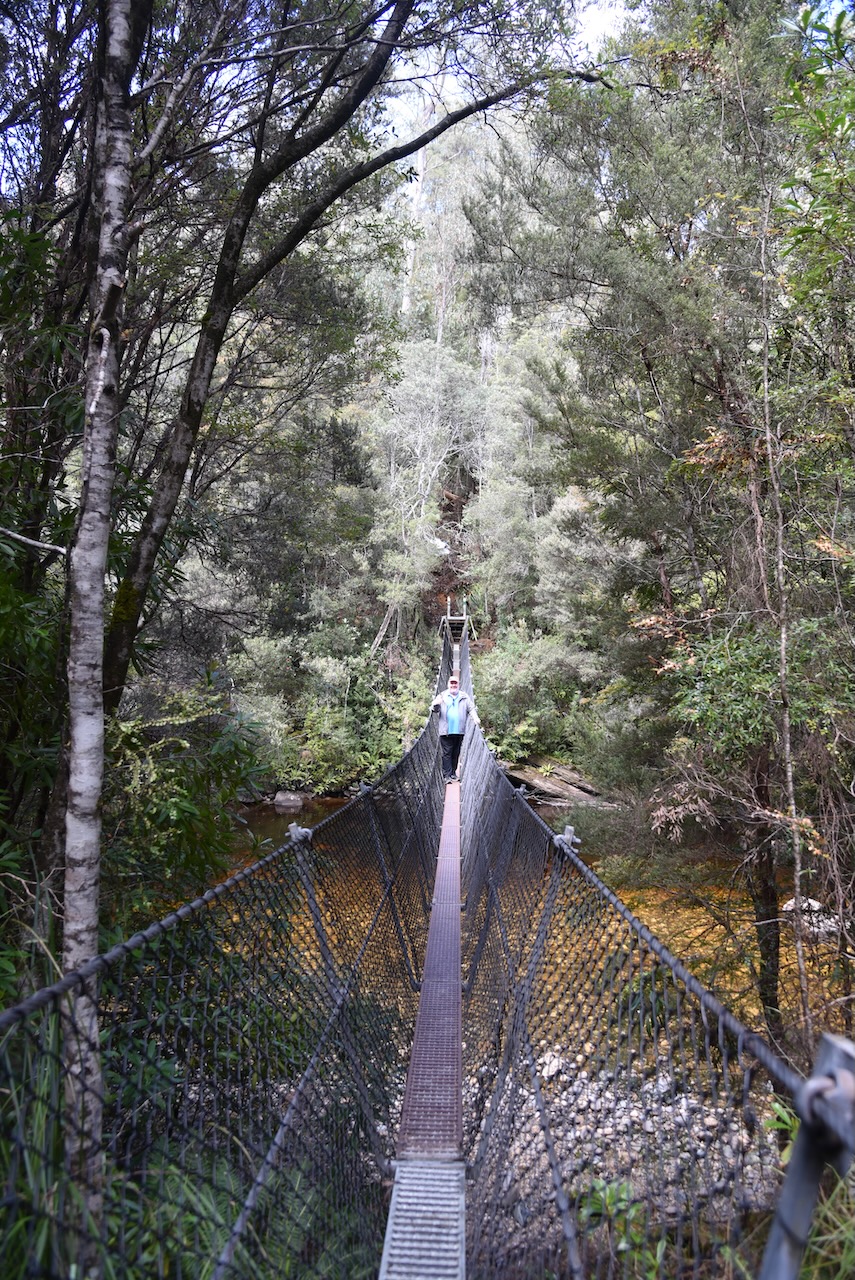 We then headed a little further along the Lyell Highway and came to the Frenchmans Cap trail which leads to the Frenchmans Cap suspension or swing bridge. The bridge can be reached after walking about 300 metres from the carpark.