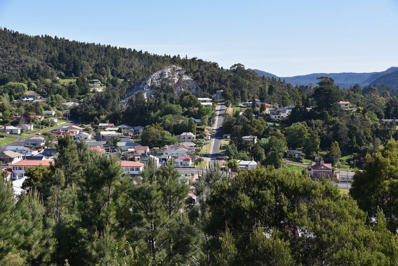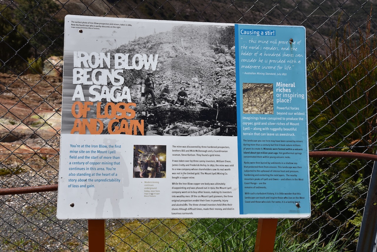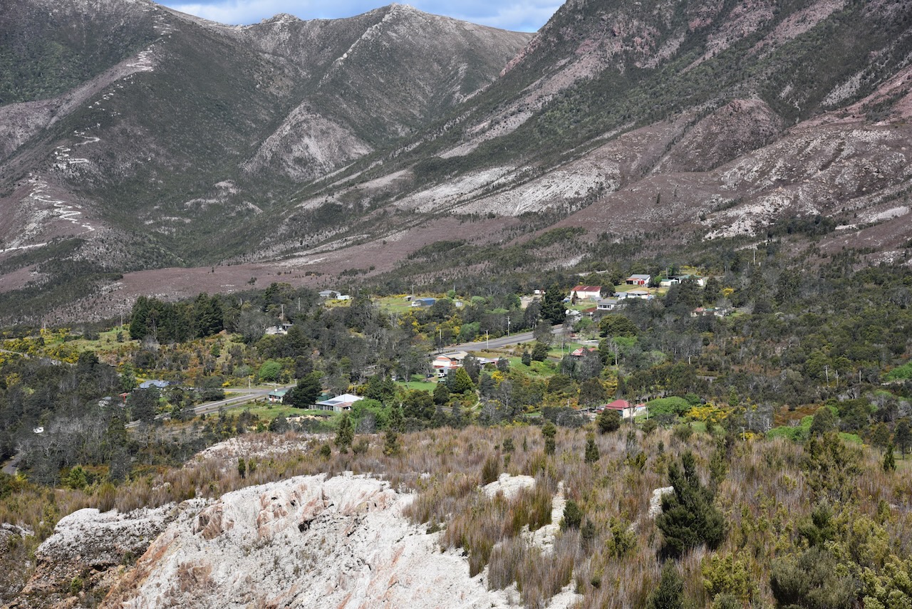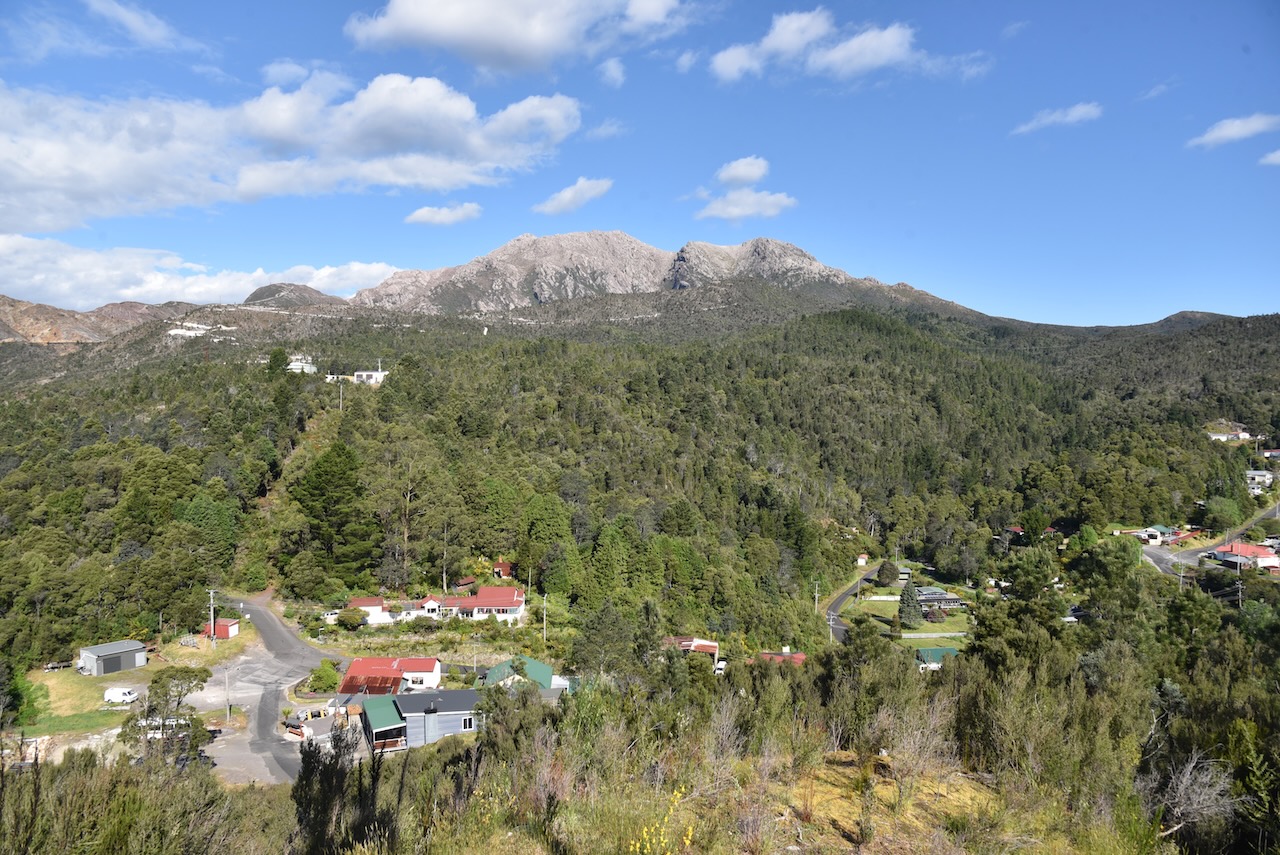Not far up the road is the old town of Gormanston which was built as the company town for the Mount Lyell Mining and Railway Company for operations at the Iron Blow open cut copper mine. It was named in honour of Jenico William Joseph Preston, 14th Viscount Gormanston, Governor of Tasmania 1893 to 1900.