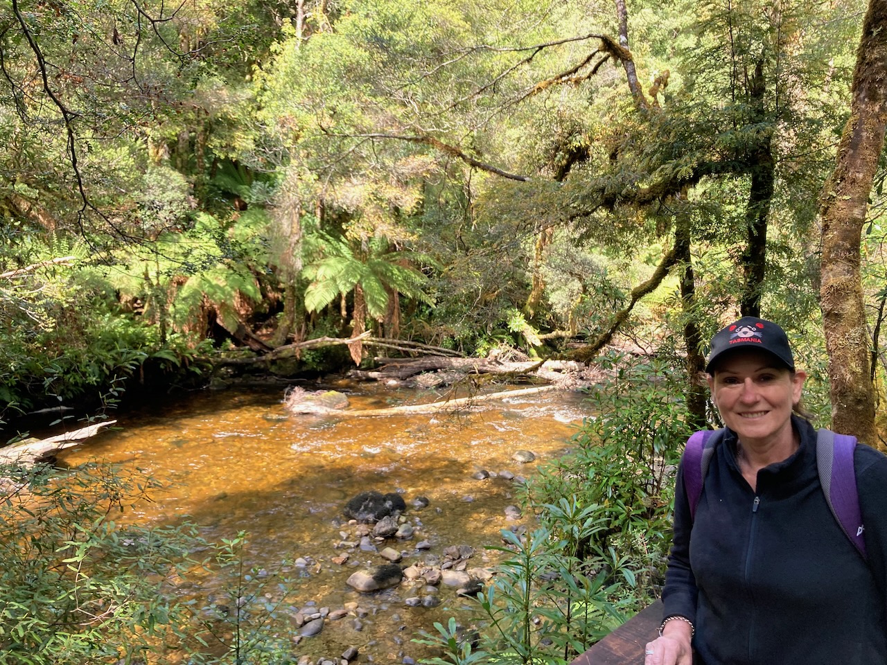 We proceeded a little further along the Lyell Highway and soon reached the carpark for Nelson Falls. It is just a short walk to the waterfall through beautiful rainforest and alongside of the Nelson River.
