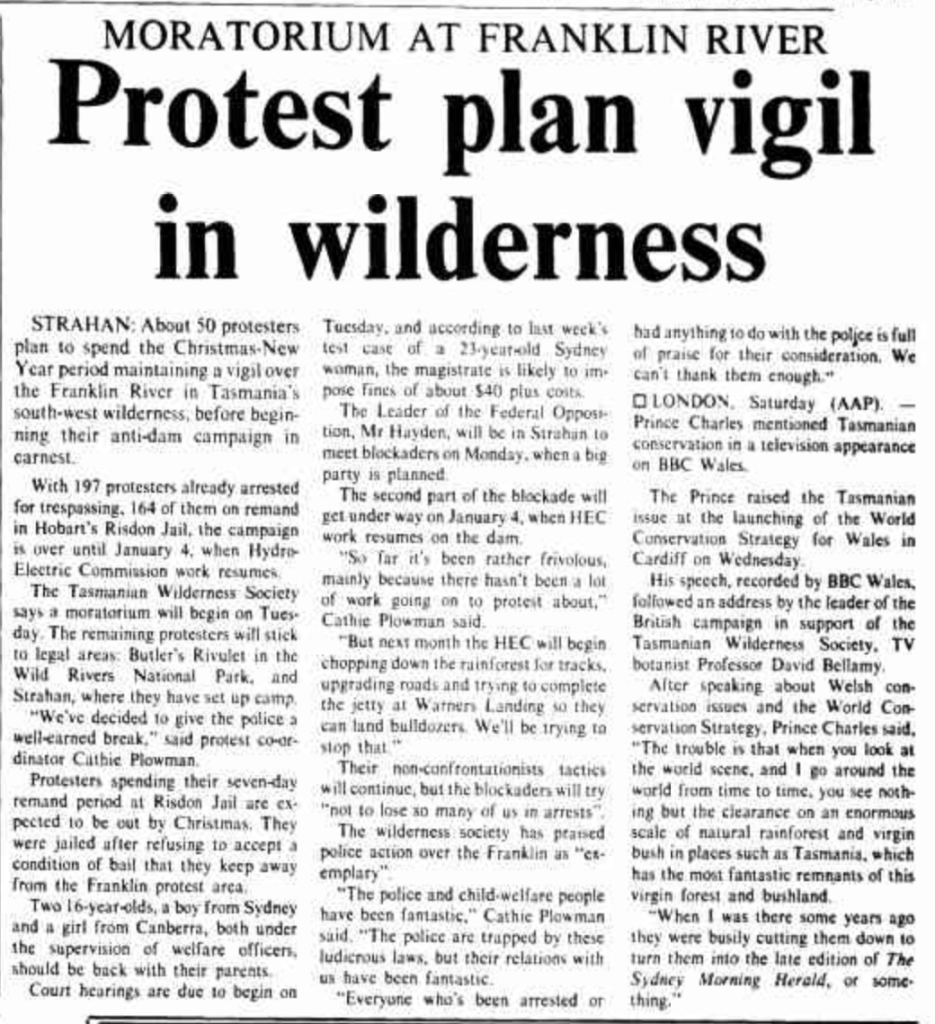 - National Archives of Australia, 2023, <https://www.naa.gov.au/learn/learning-resources/learning-resource-themes/environment-and-nature/conservation/protesting-franklin-dam>, viewed 3rd January 2023.