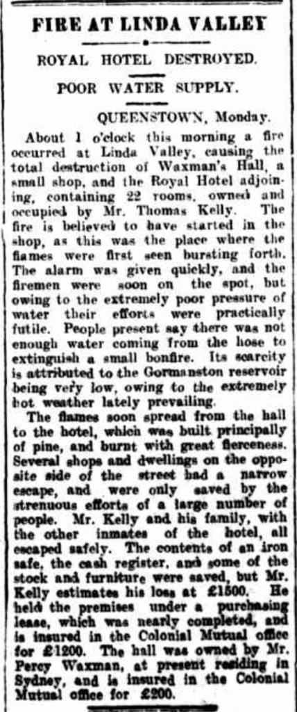 Adjacent to the cafe are the ruins of the old Royal Hotel which was built in 1901 by George Eaves. The hotel was destroyed by fire in 1910 whilst under the ownership of Tom Kelly who then had the hotel rebuilt.