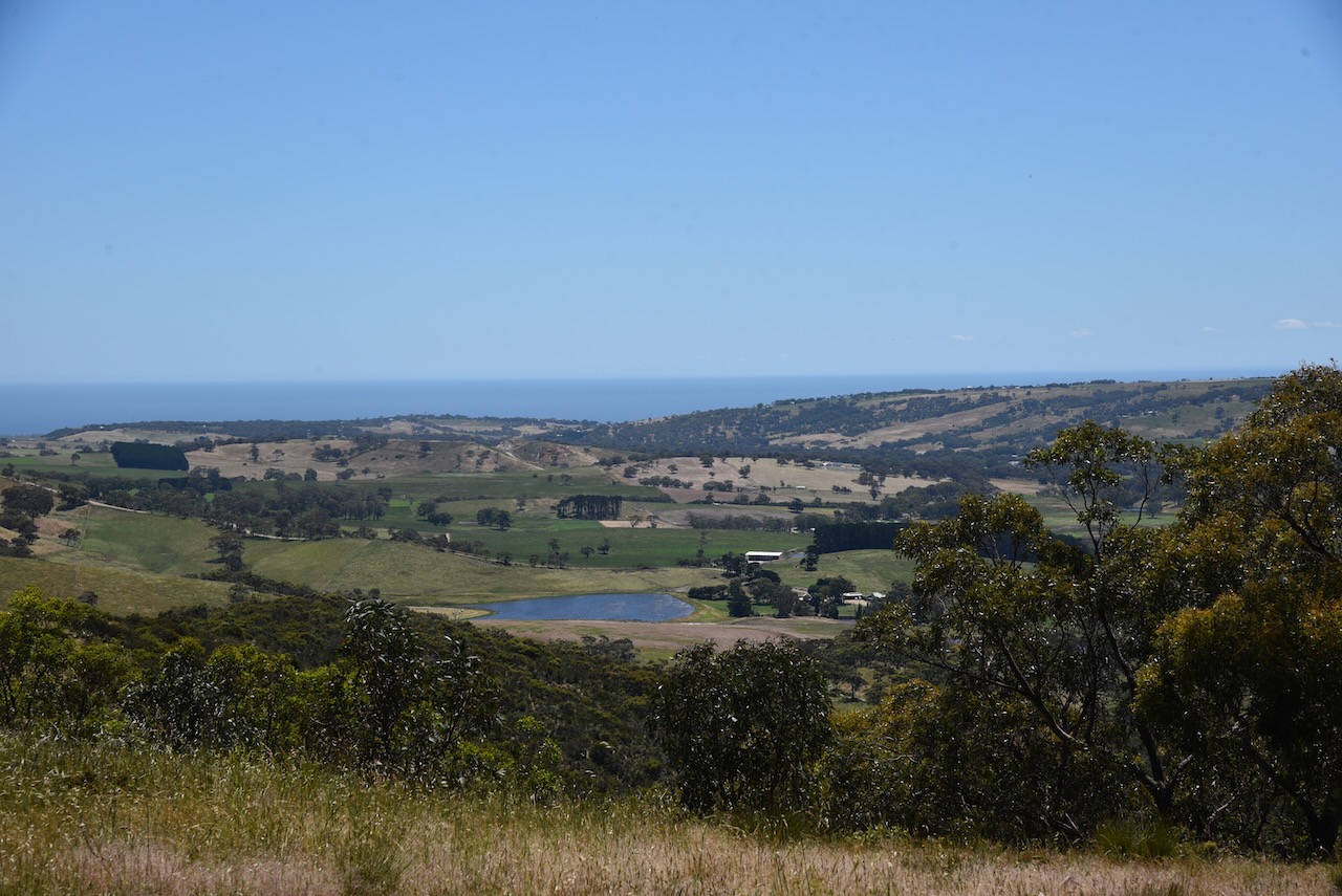 As we drove up James Track we were rewarded with some nice views of the township of Myponga and the Myponga Reservoir.