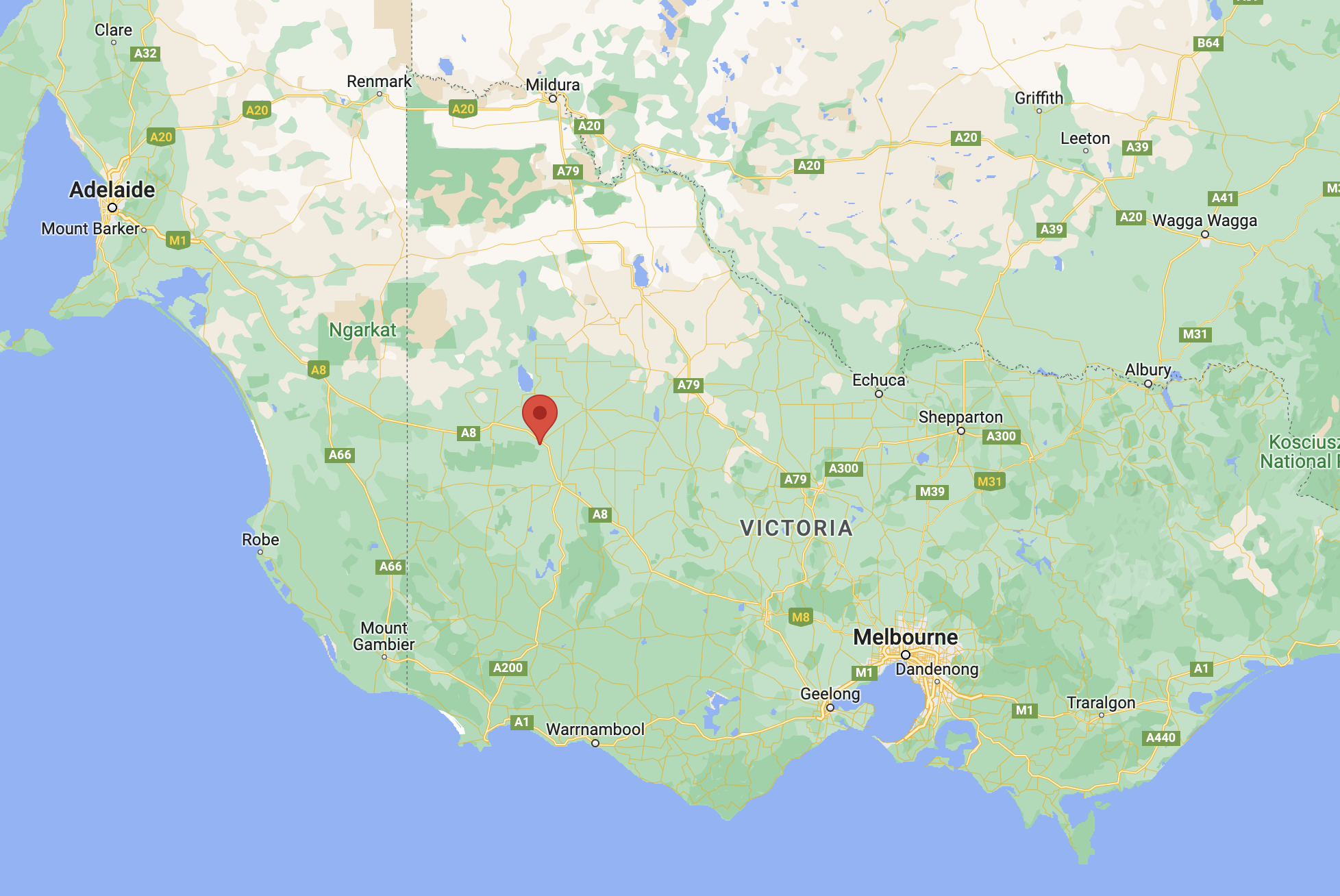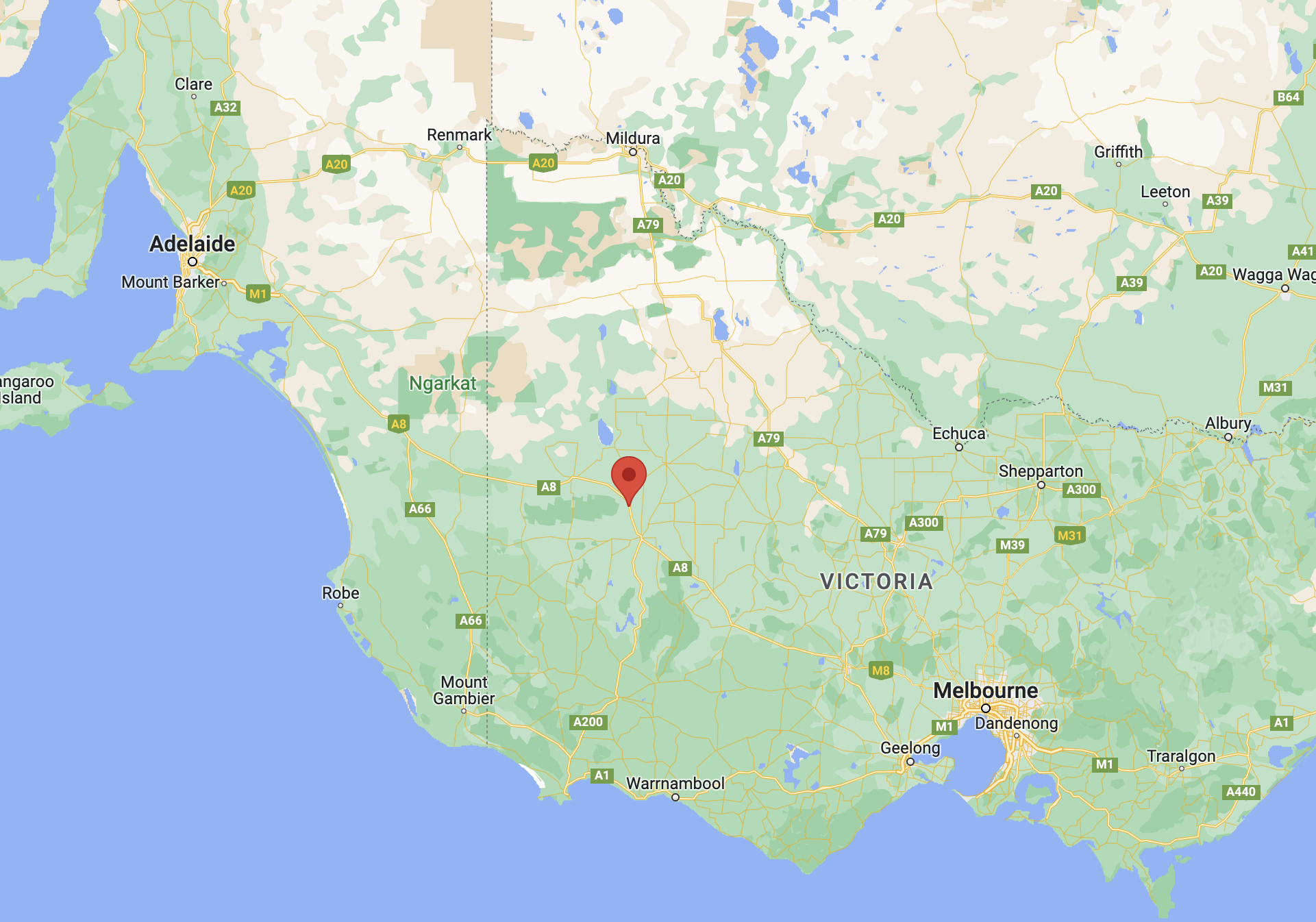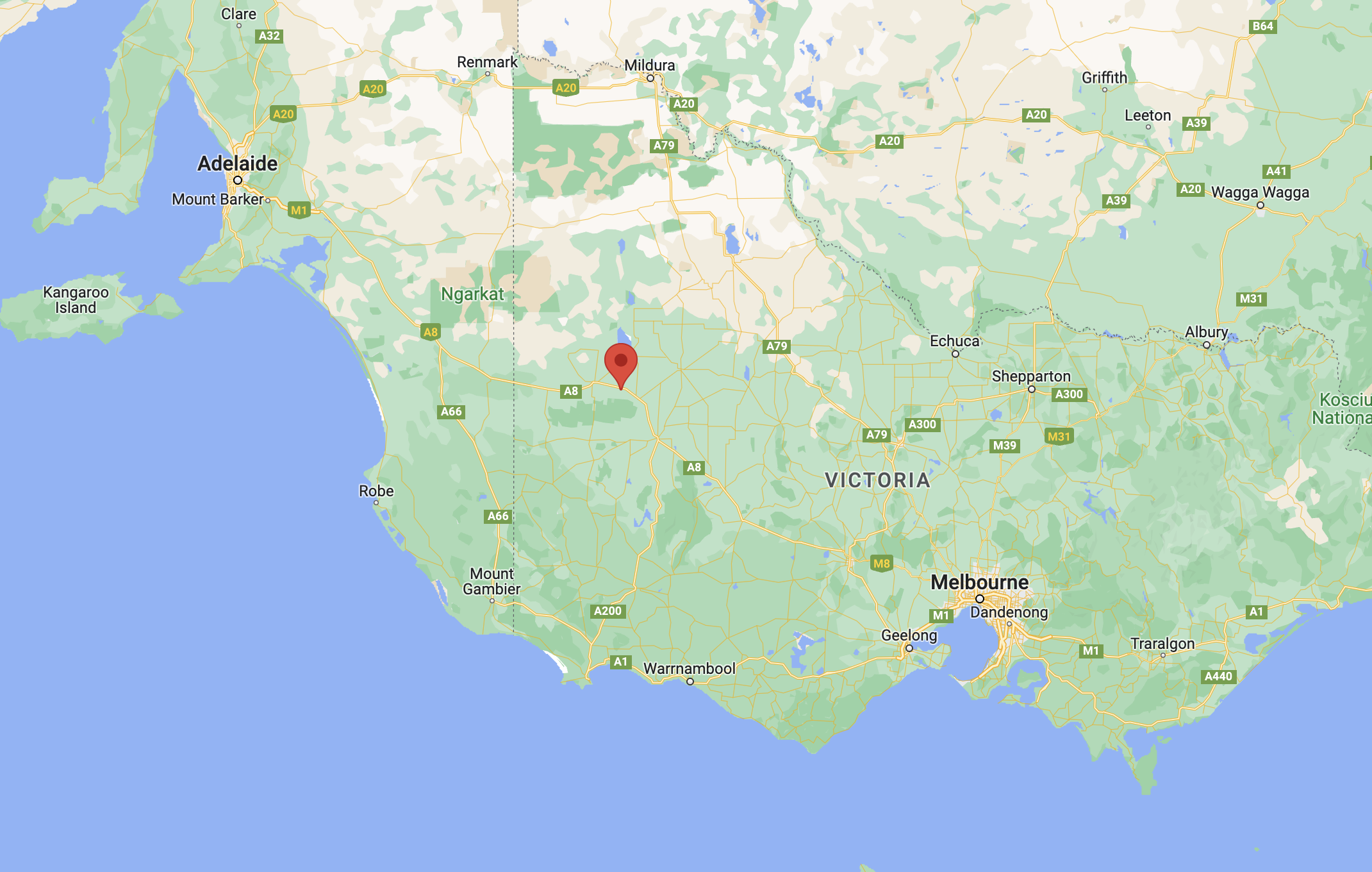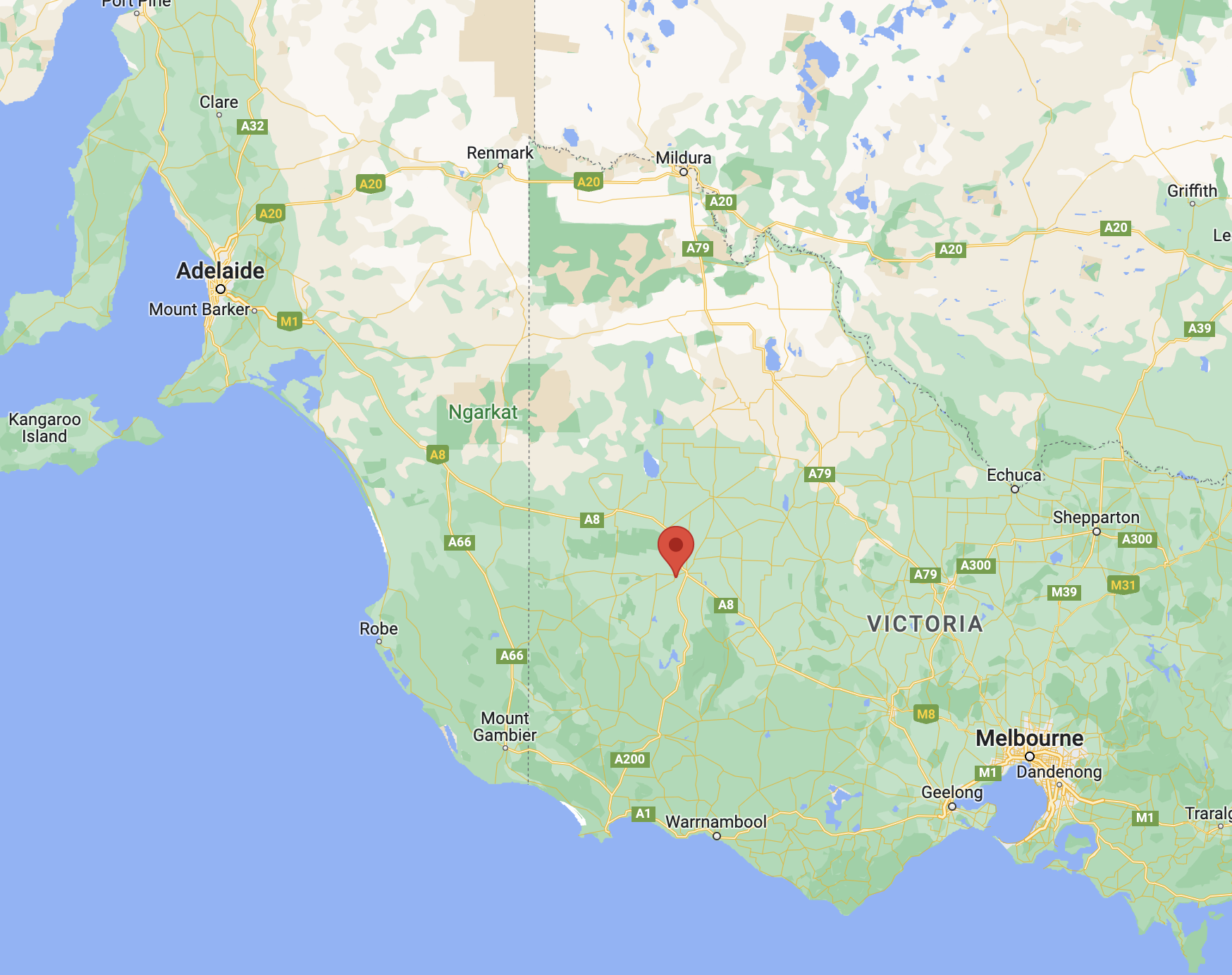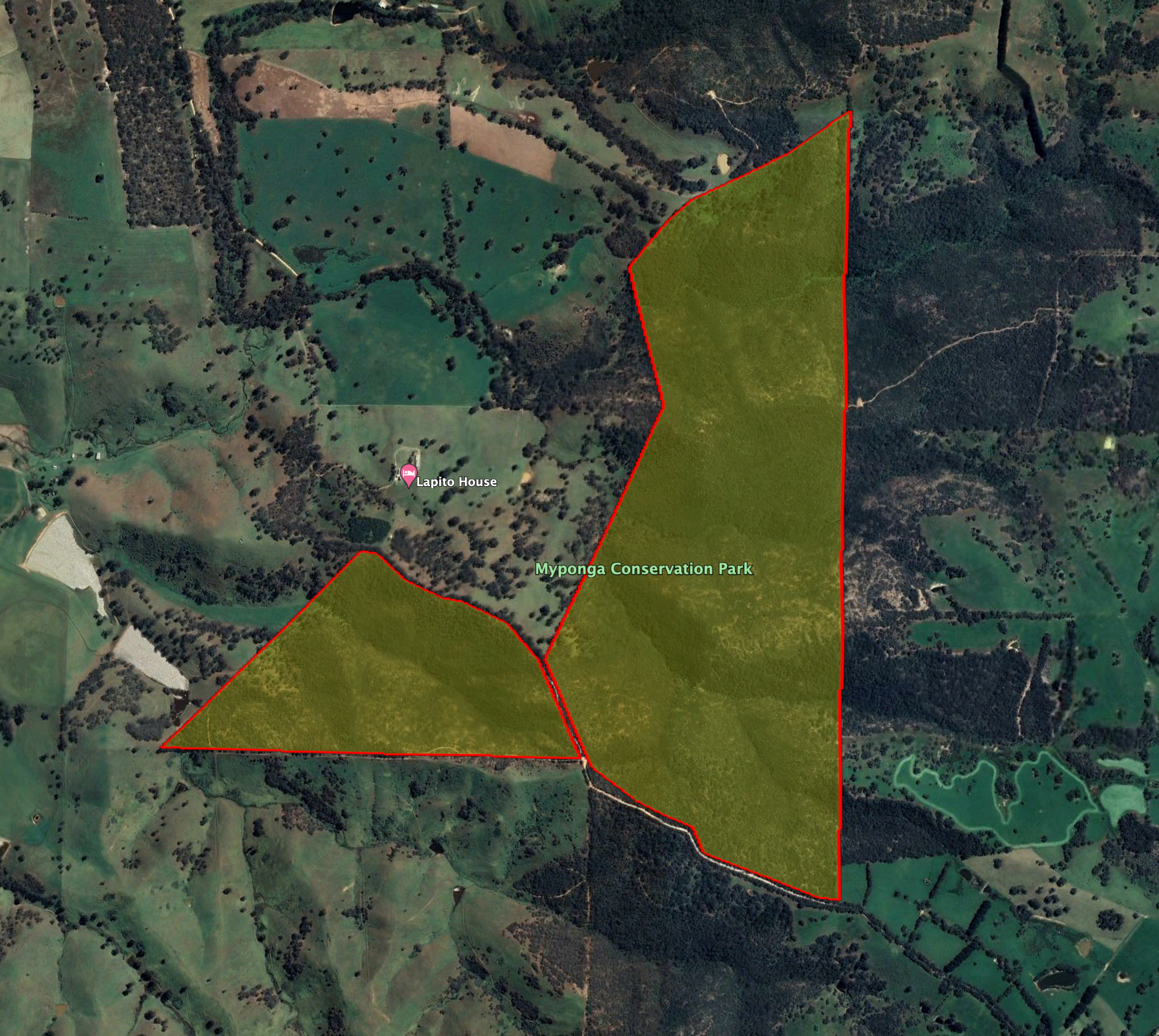 Above:- An aerial view of the Myponga Conservation Park. Image c/o Google maps.