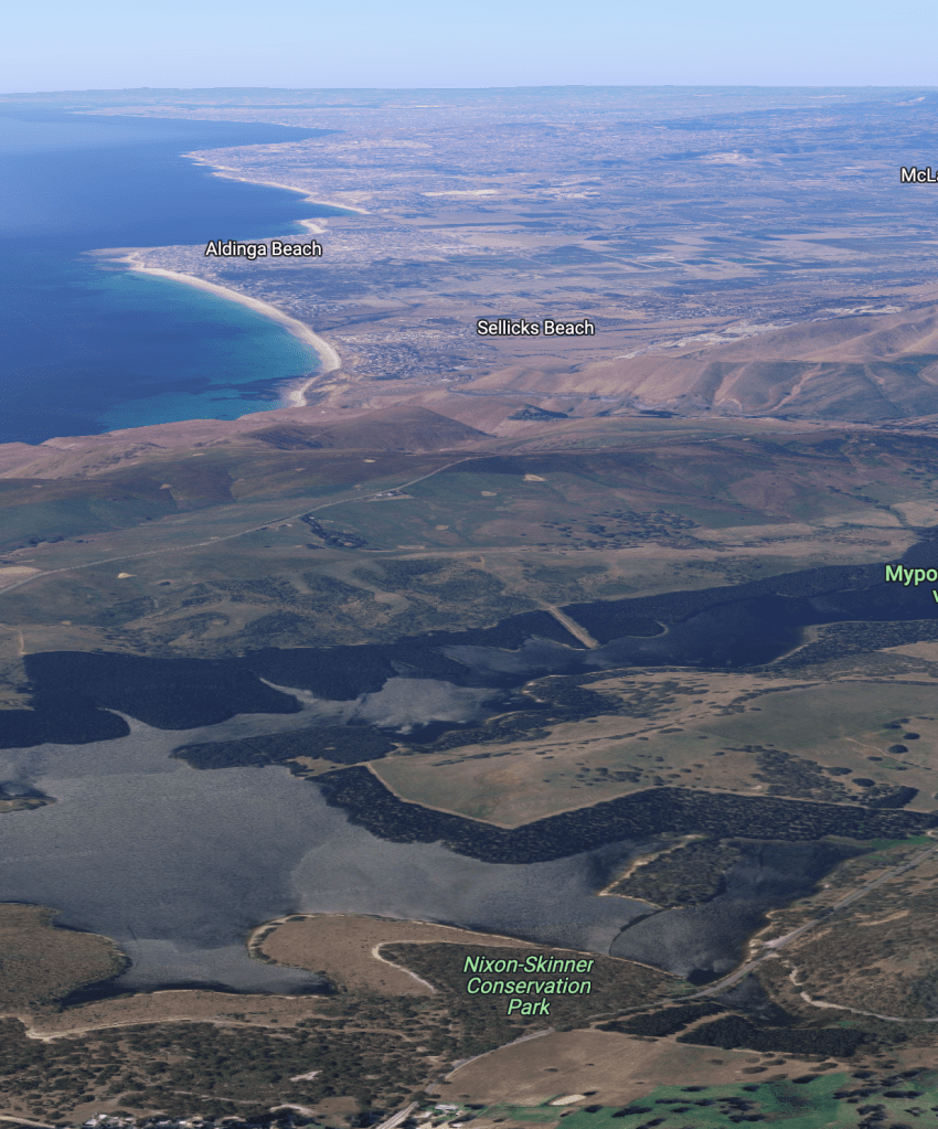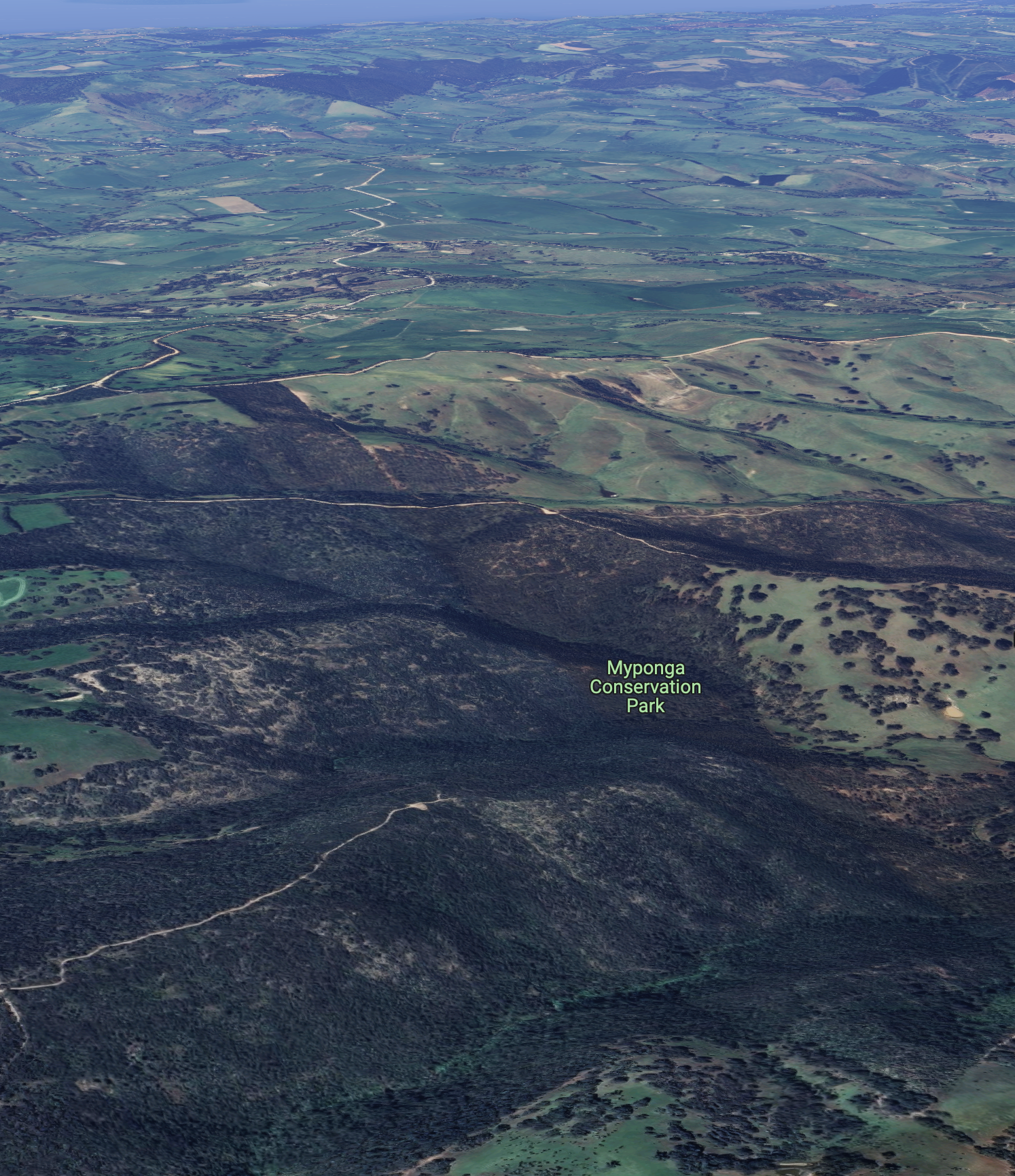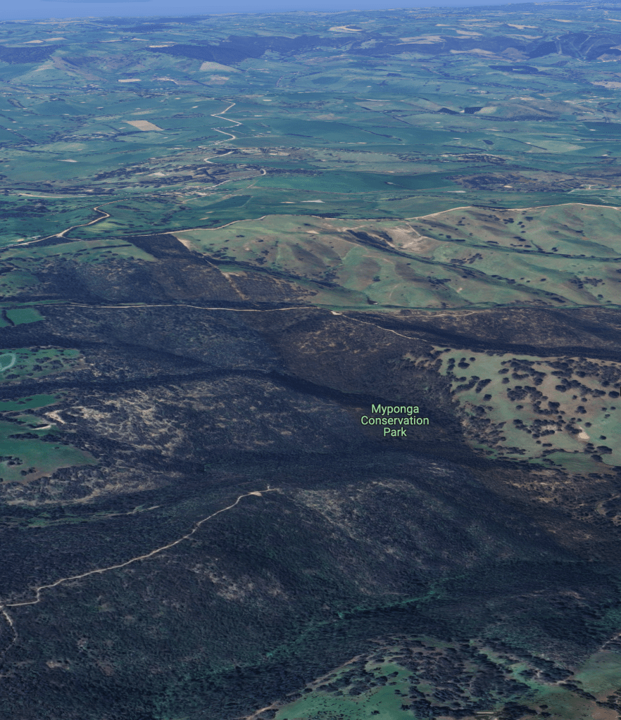 Above:- An aerial view of the Myponga Conservation Park. Image c/o Google Earth.