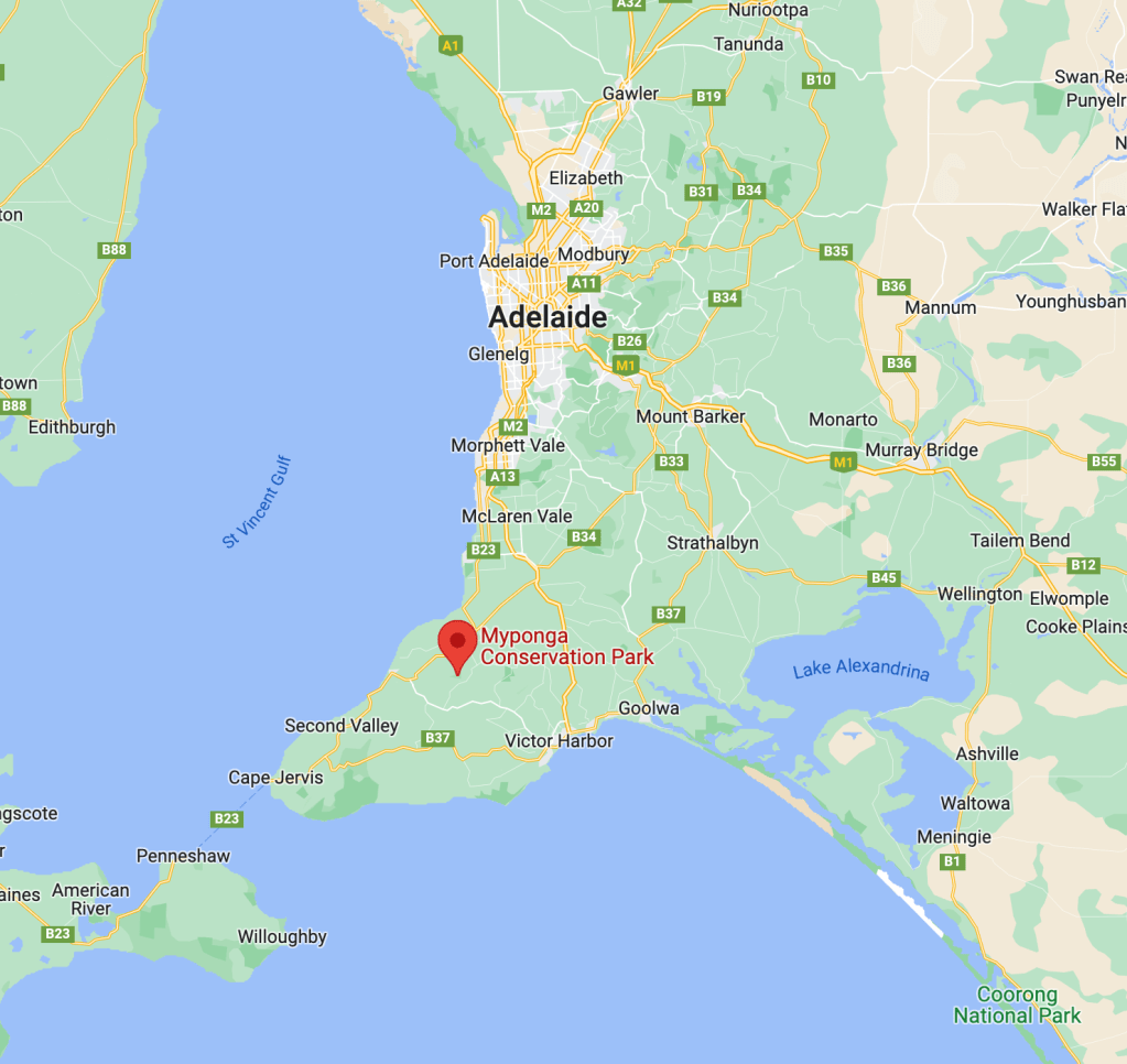 Our second park for Saturday 26th November 2022 was the Myponga Conservation Park, located about 71 km south of the city of Adelaide.