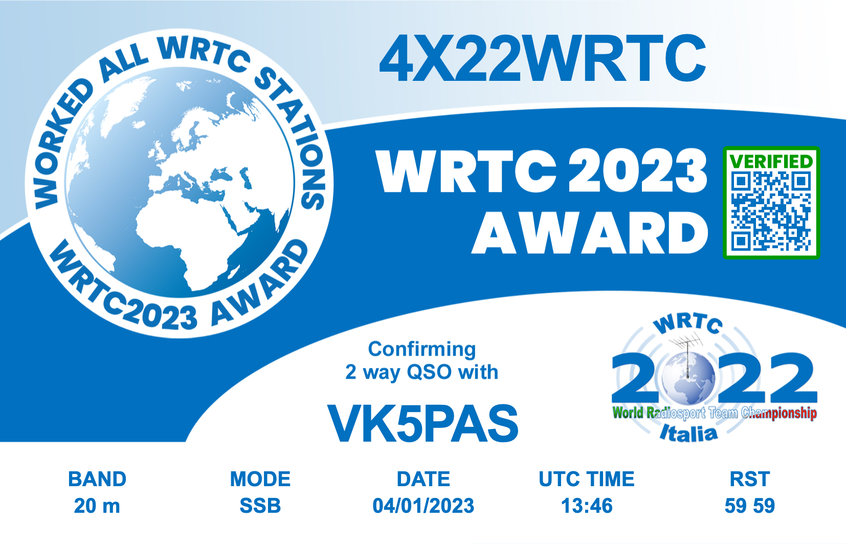 • 4X22WRTC Israel – 20m, 15m