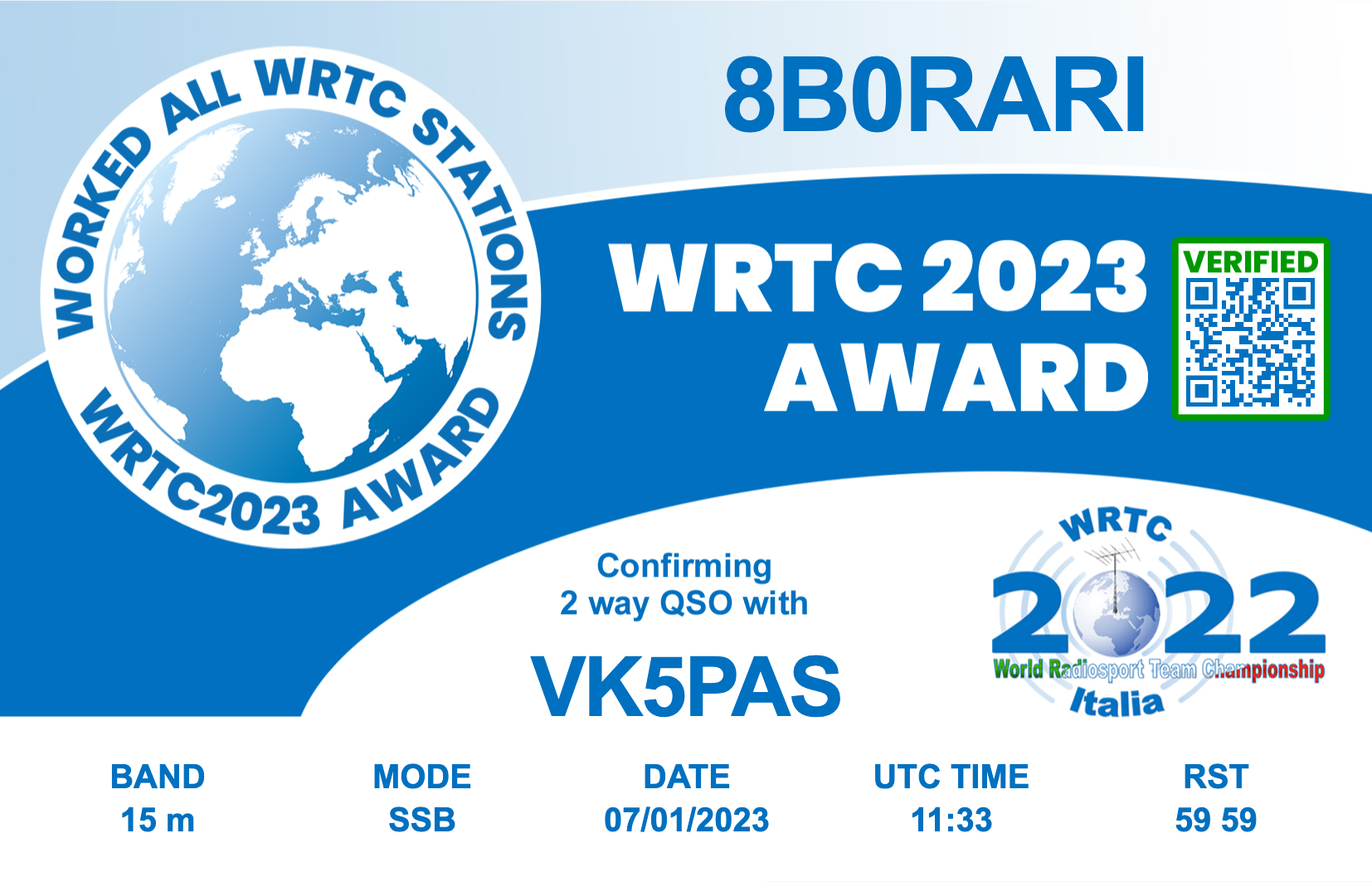 So far I have worked the following WRTC stations:-