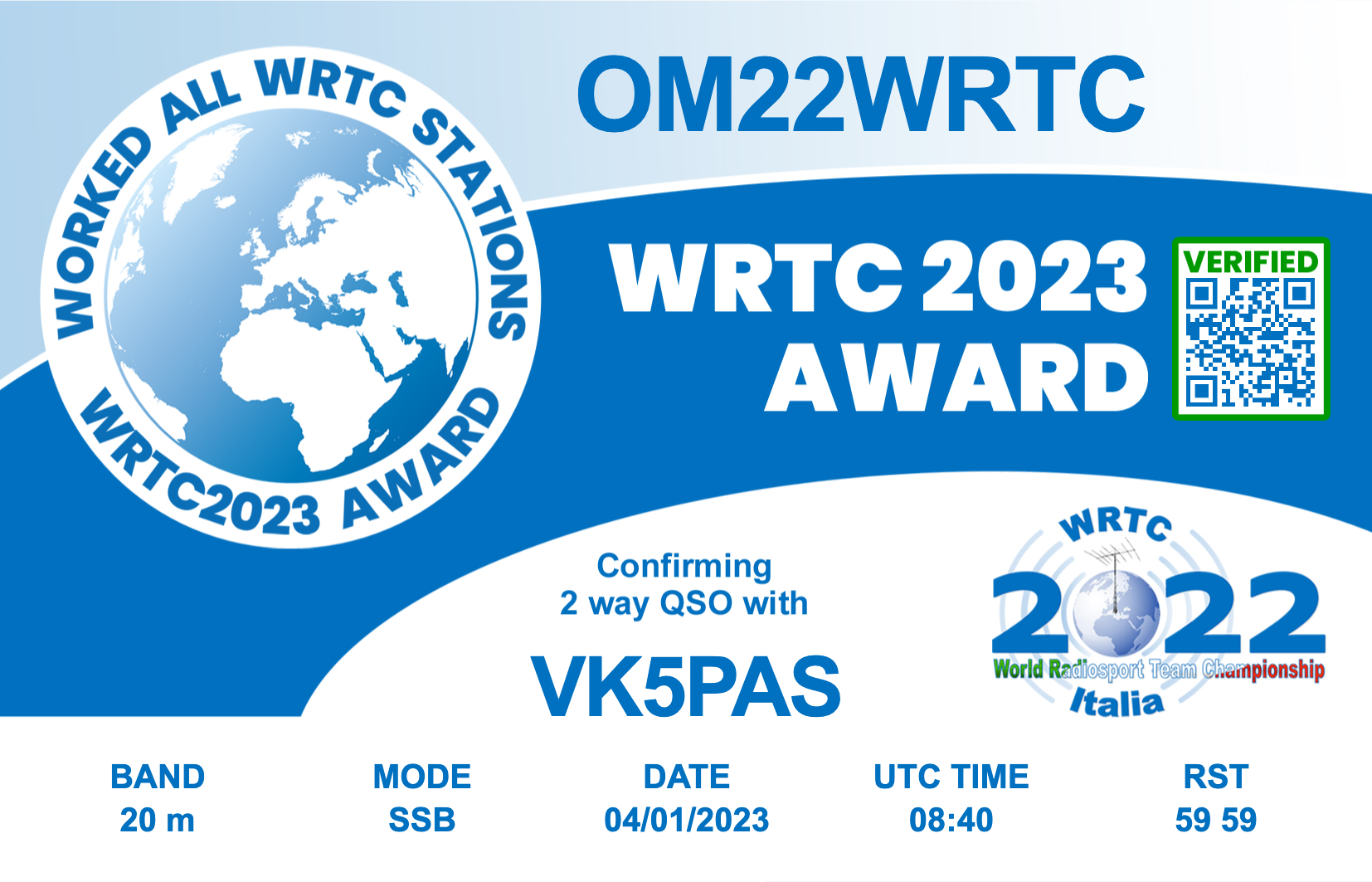 • 9A22WRTC – 20m