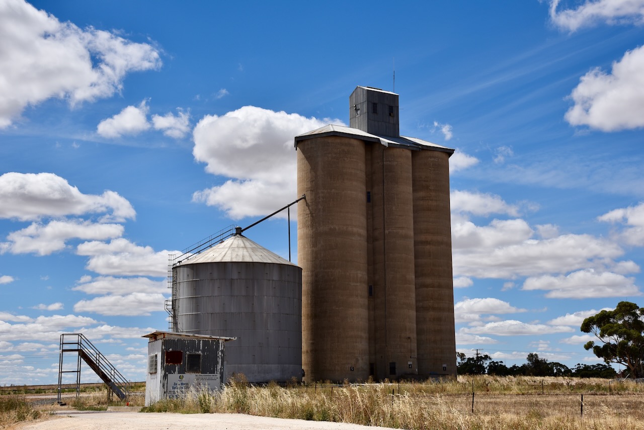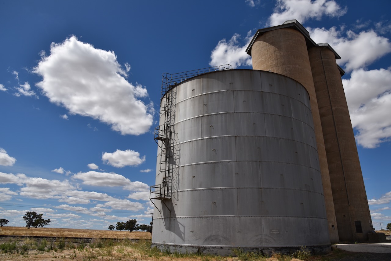 The silos at Tatyoon were constructed in the town adjacent to the railway station due to the expansion of wheat growing in the district.