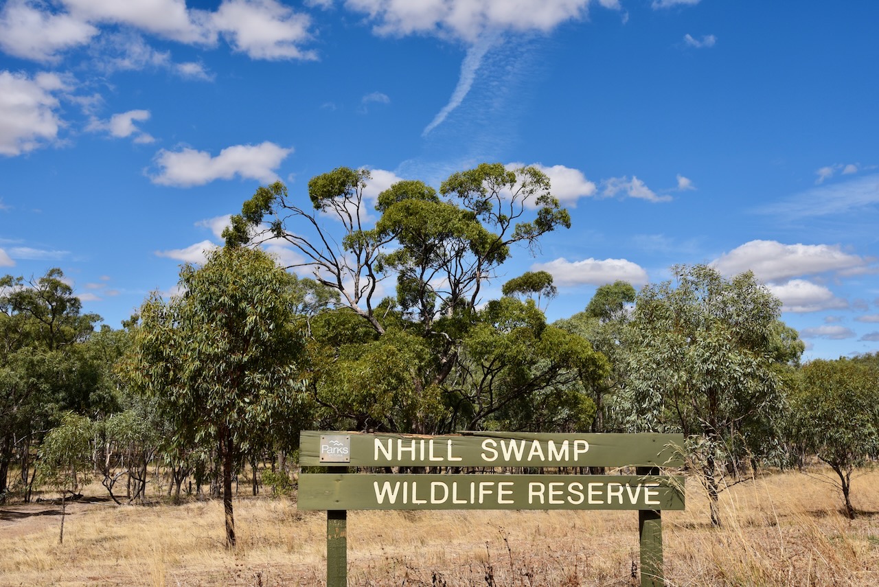 The Nhill Swamp Wildlife Reserve is 160 acres in size and is located on the southern side of the Western Highway, just beyond the Jaypex Public Park, and on the eastern side of the Nhill-Harrow Road.