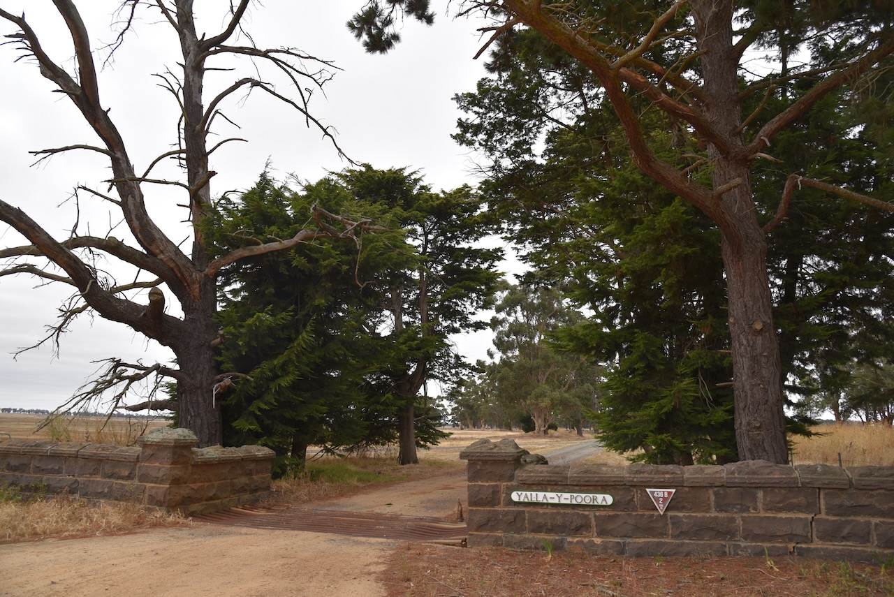 Yalla-Y-Poora is believed to be aboriginal for trees by water. The land was taken up by squatters Thompson and Stevens in 1841. They had made a five-month journey from Yass in New South Wales to overland their sheep on the banks of Fiery Creek. By 1854 the property had been sold to James Austin. In 1856 he sold the property to Jeremiah Ware. Jeremiah and his brothers John and Joseph had moved from Tasmania to establish their sheep property. Yalla-Y-Poora consisted of 66,493 acres.