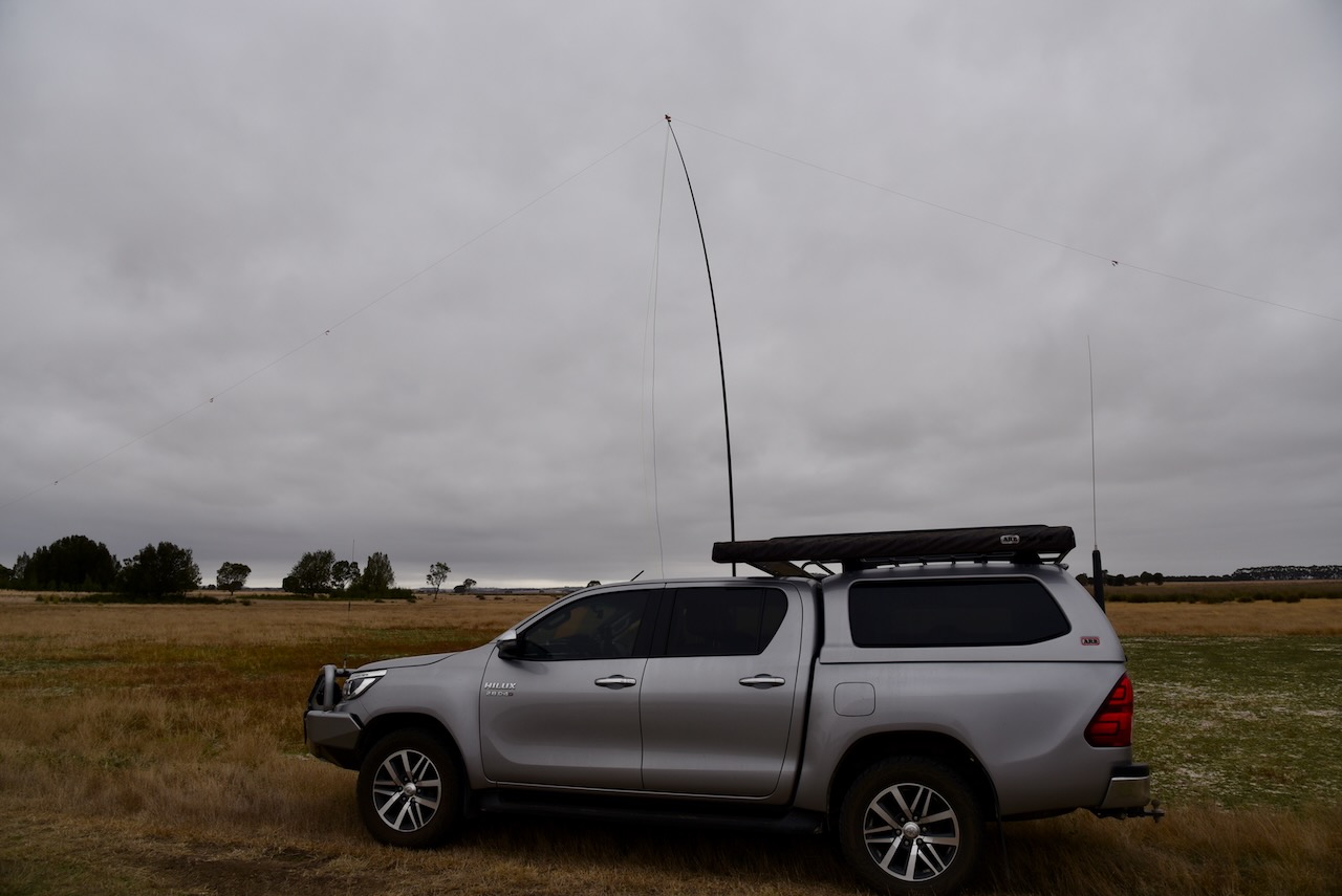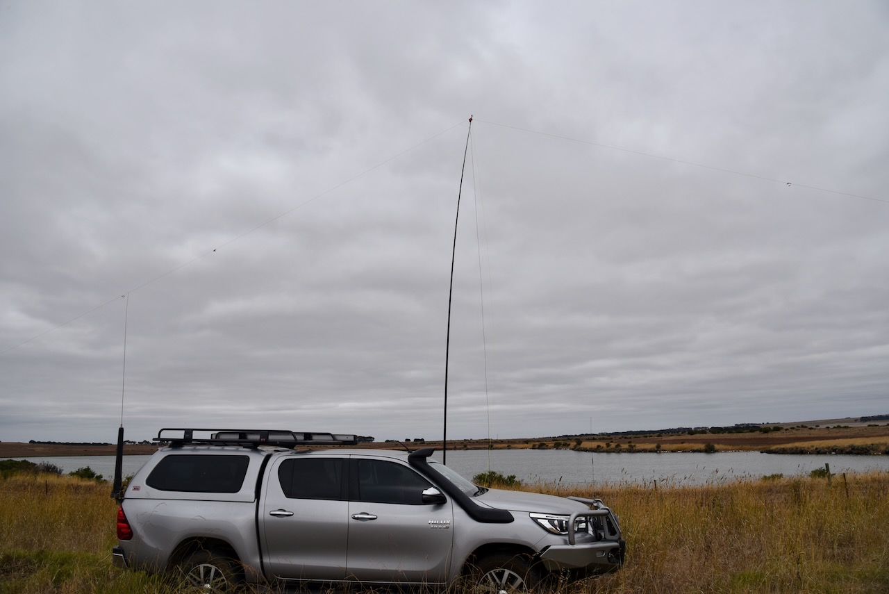 We pulled up right alongside the silo and operated from the 4WD, running the Icom IC-7000, 100 watts, and the Codan 9350 antenna. We found band conditions to be extremely poor.