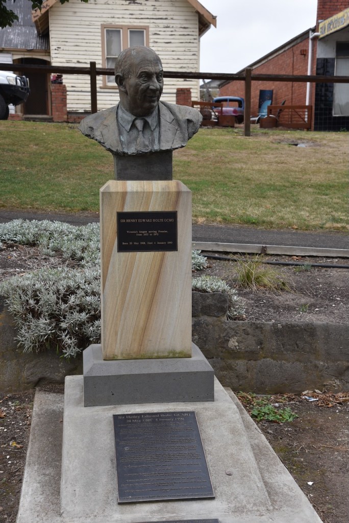 Sir Henry Edward Bolte GCMG (b. 1908. d. 1990) served as the 38th Premier of Victoria. To date he is the longest-serving Victorian premier, having been in office for over 17 consecutive years. He spent the first 24 years of his life in Skipton and attended the Skipton Primary School. There is a bust/monument in Skipton to honour Bolte.