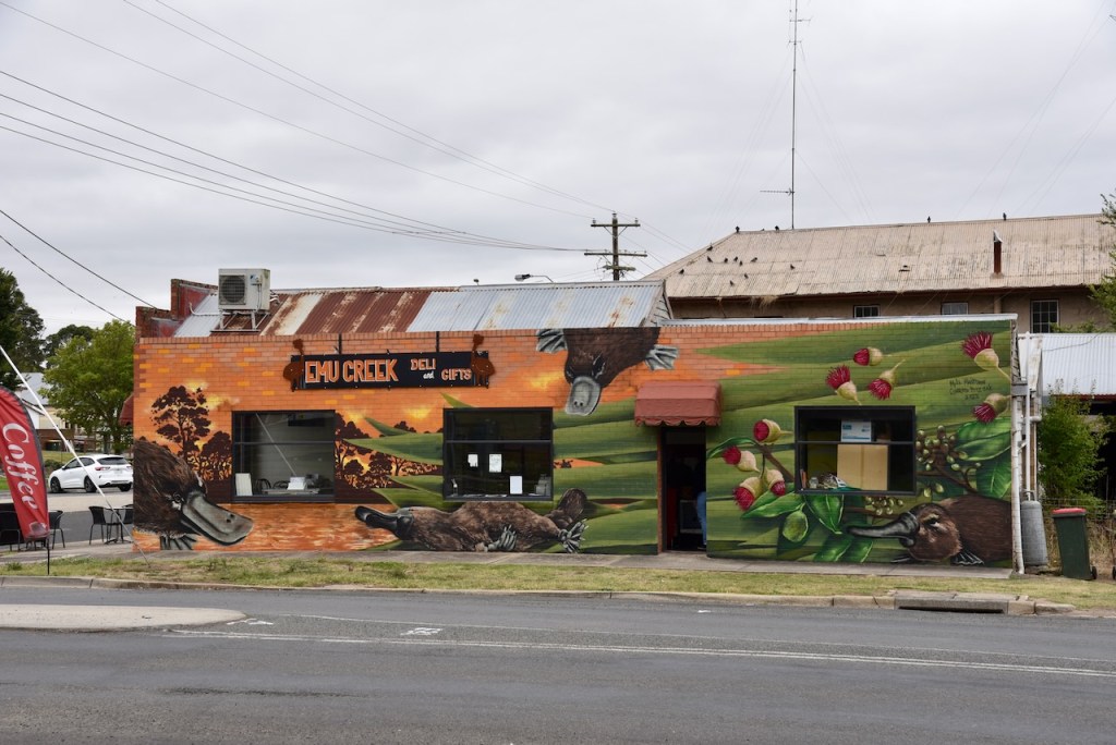 On the bridge that crosses Emu Creek, there is some artwork on the bridge pylons and information boards with history about Skipton.