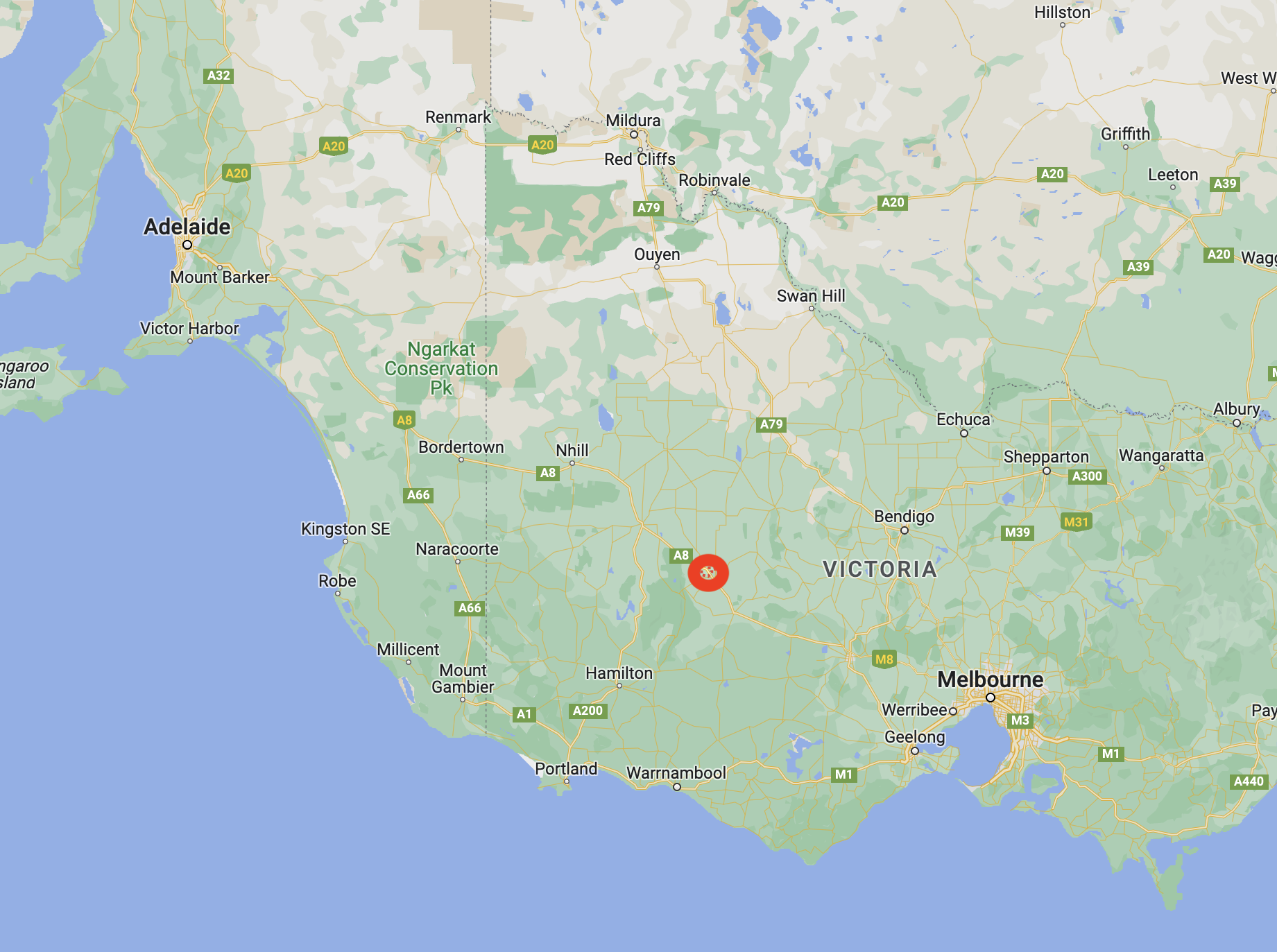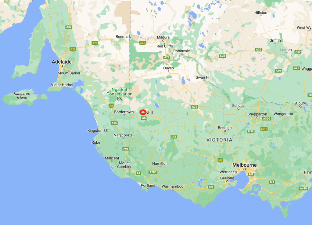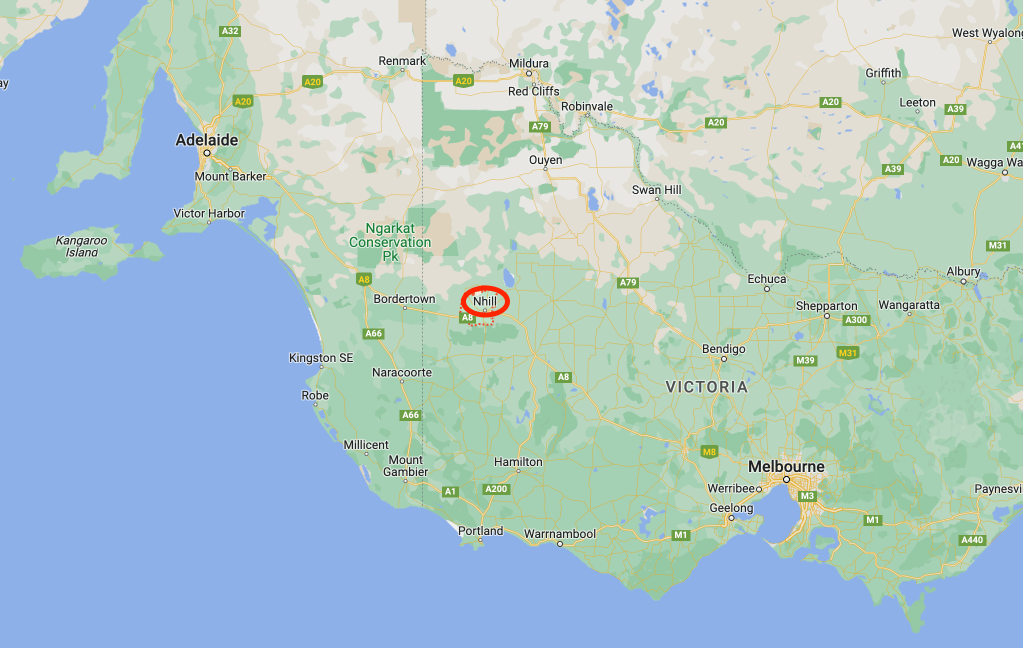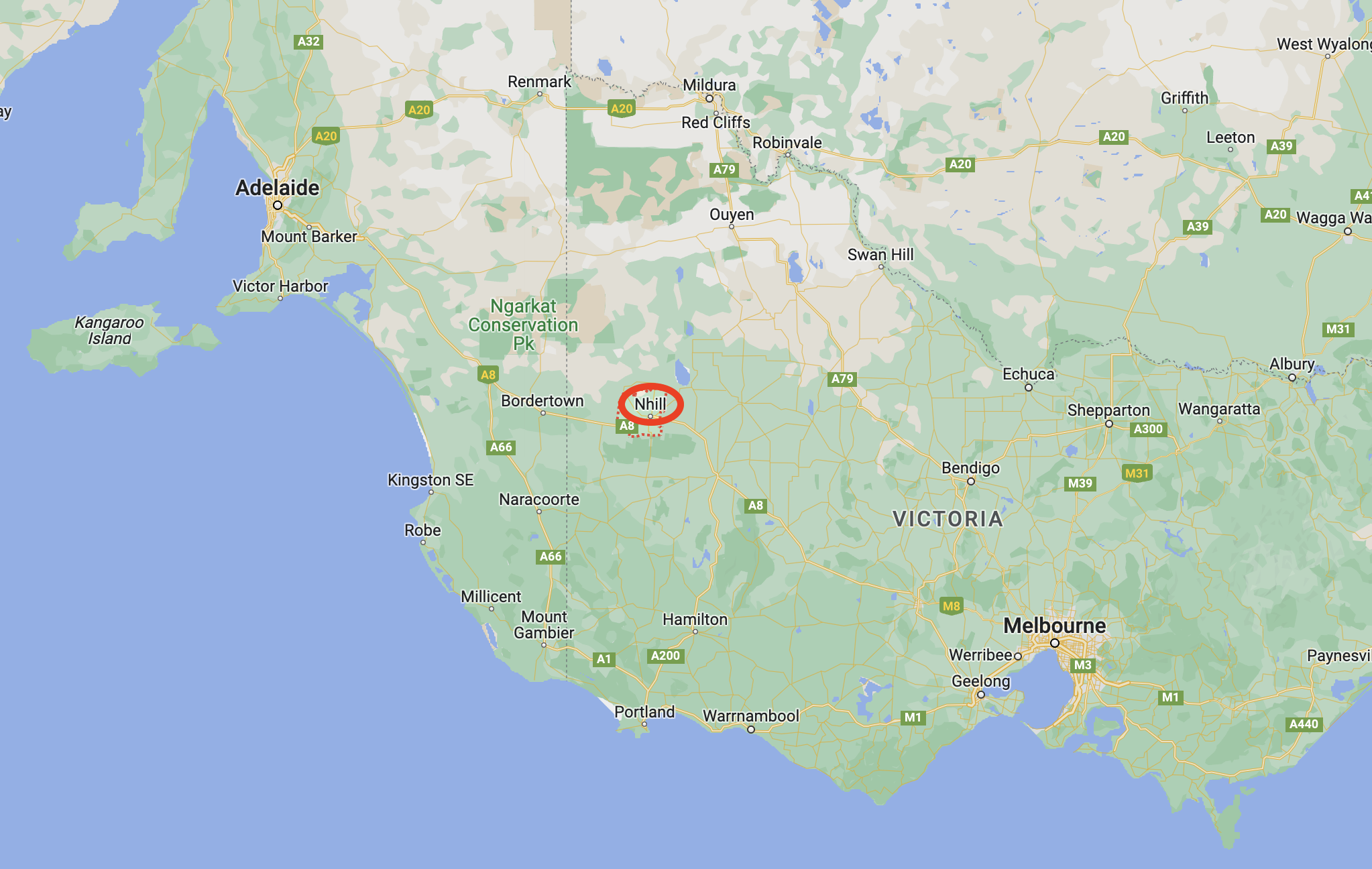 Above:- Map showing the location of Nhill. Map c/o Google maps.