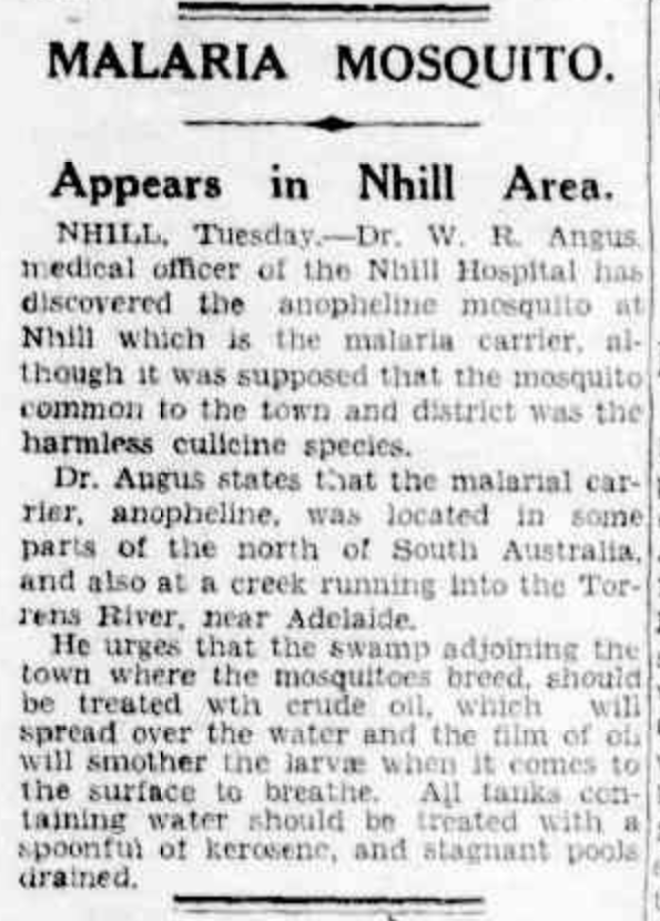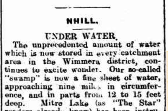 In 1911 a typhoid outbreak in Nhill was blamed on the Nhill swamp. In March 1911 the Ballarat Star stated:-