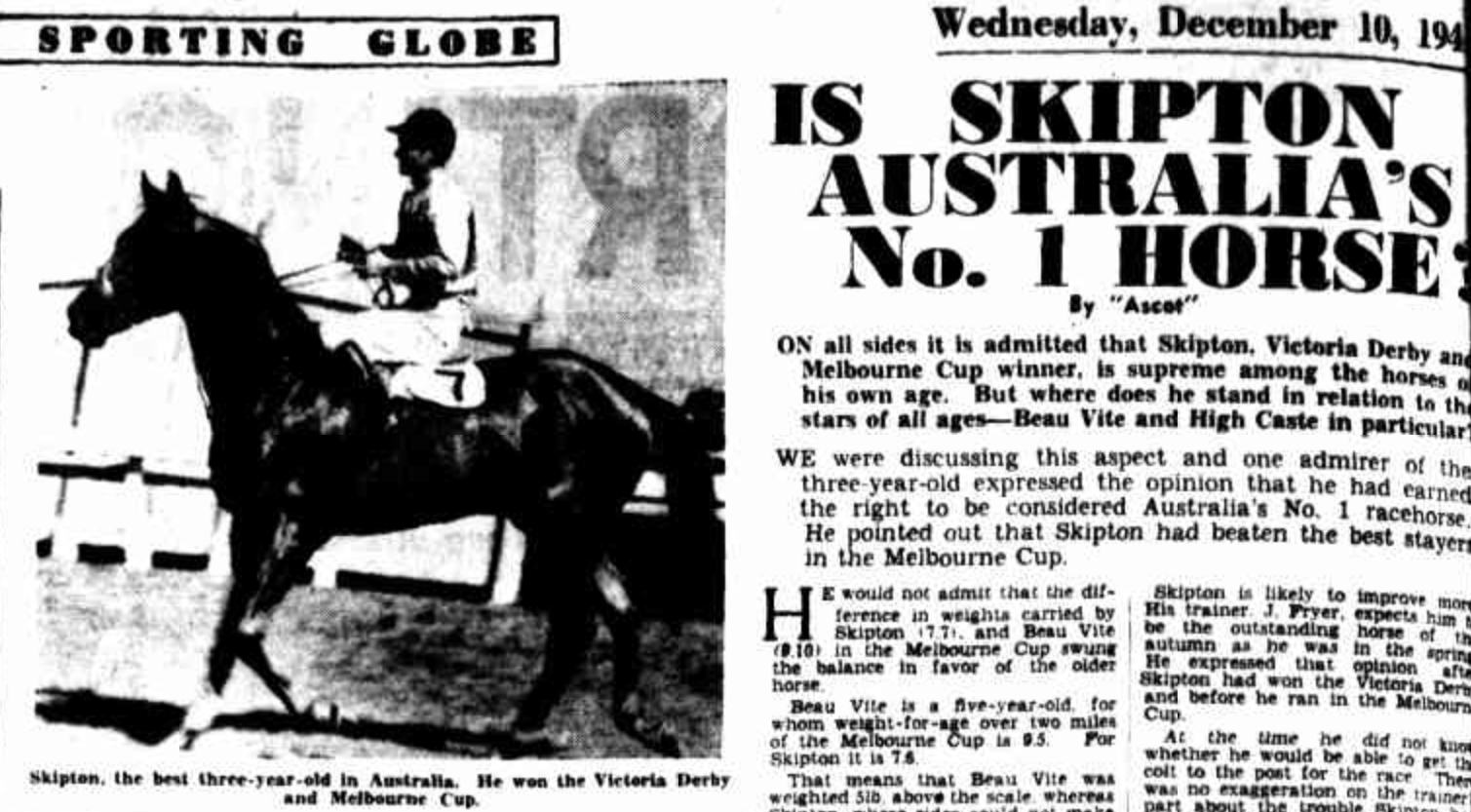 Above:- Portion of an article from the Sporting Globe, Melbourne, Wed 10 Dec 1941. c/o Trove.