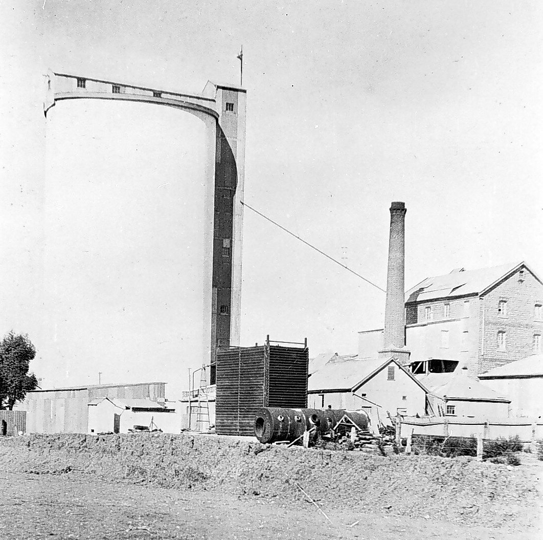 In 1918 Traugott Noske and his brother Ernest Noske arranged to have built a large bulk storage bin built at their Horsham mill. In 1919 they built an even larger one at Nhill. It was designed by James Batson. The silo at Nhill is the largest single-cell concrete grain silo in the Southern Hemisphere. The silo is 100 feet tall with a diameter of 50 feet. It has a capacity of 135,000+ bushels (3,674t) of wheat. The silo cost £7,000 to build which in today’s costs is the equivalent of about $AUD 676,784.49.