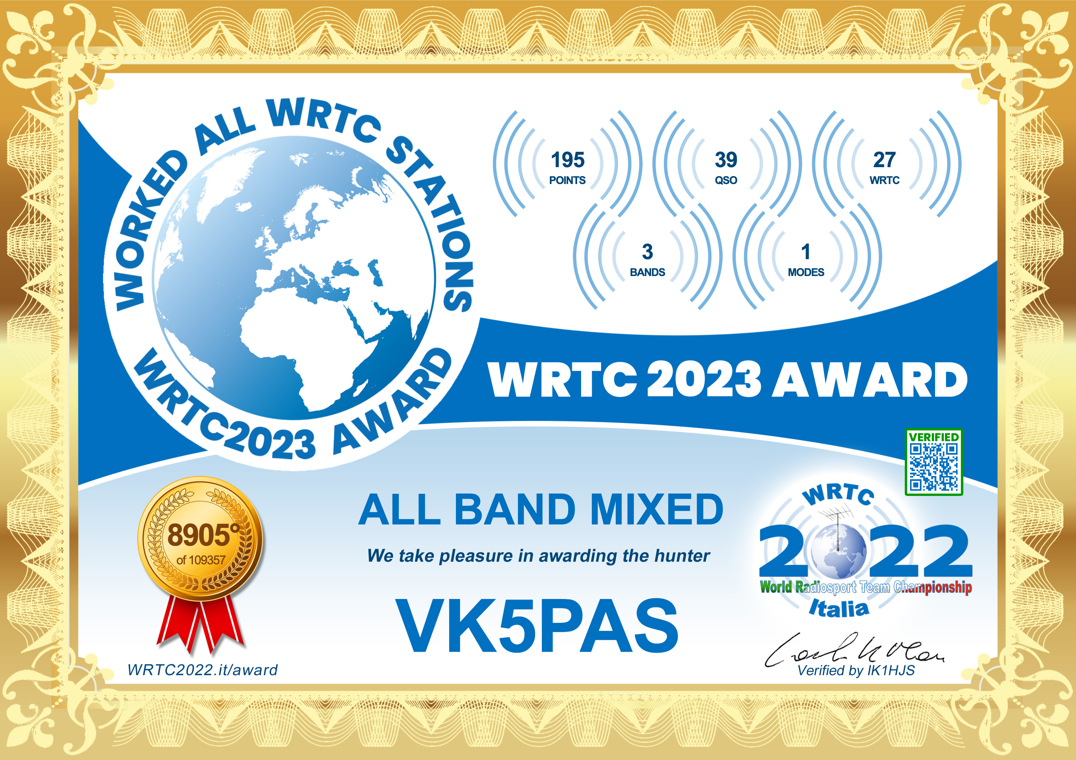 Just downloaded my World Radiosport Team Championship (WRTC) award certificate.