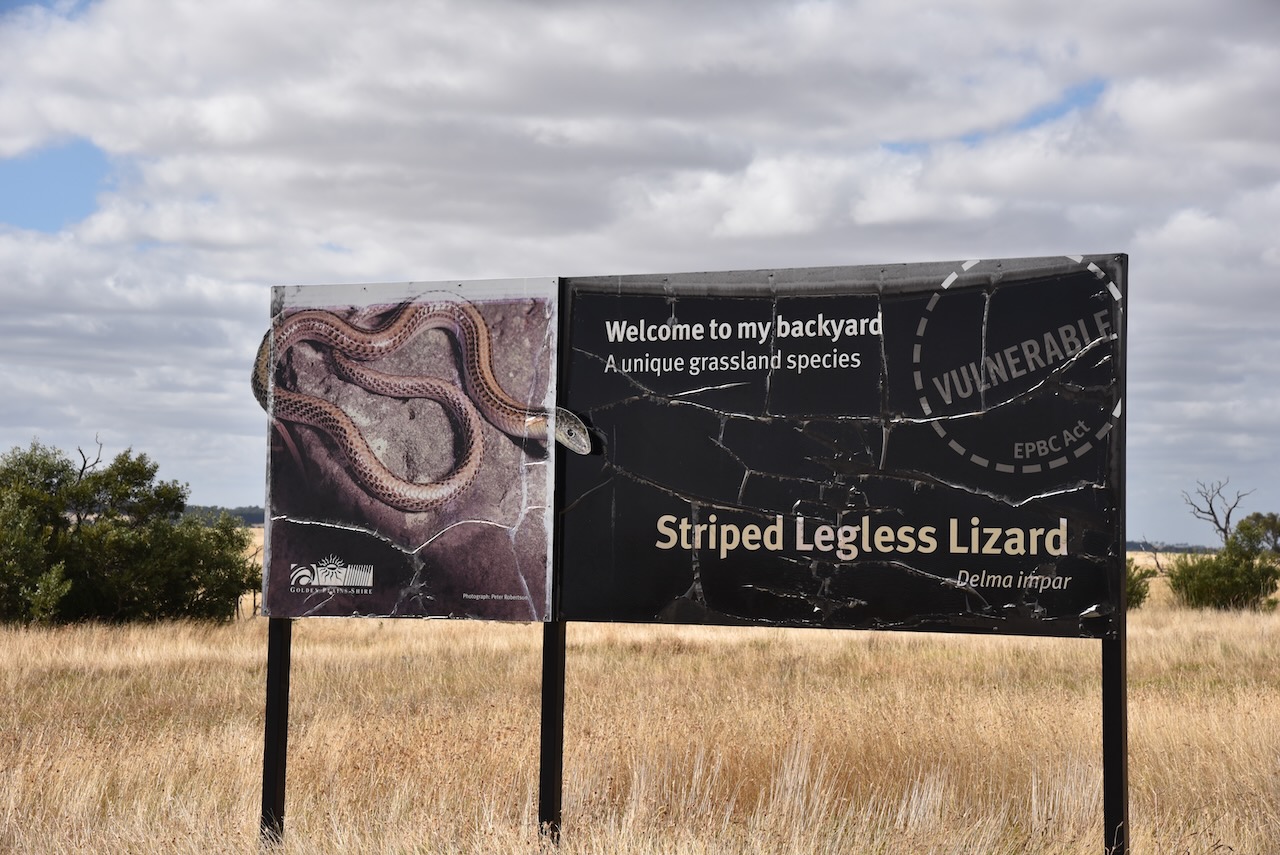 The park is home to the nationally significant Striped Legless Lizard. It is threatened with extinction, with few habitats left. The lizard is up to 30cm in length and is superficially similar to a snake. It is sometimes confused with the deadly Brown snake.