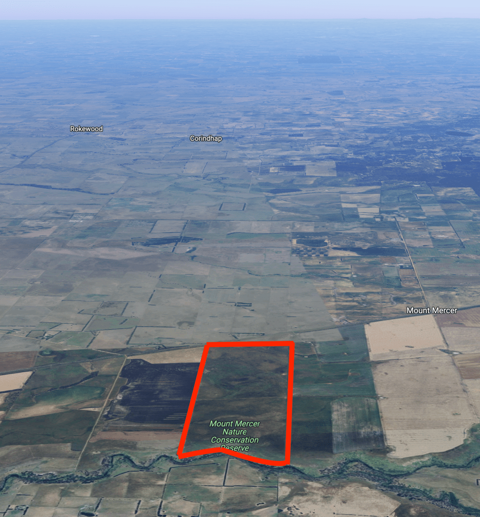 Above:- An aerial view of the Mount Mercer NCR. Image c/o Google maps.