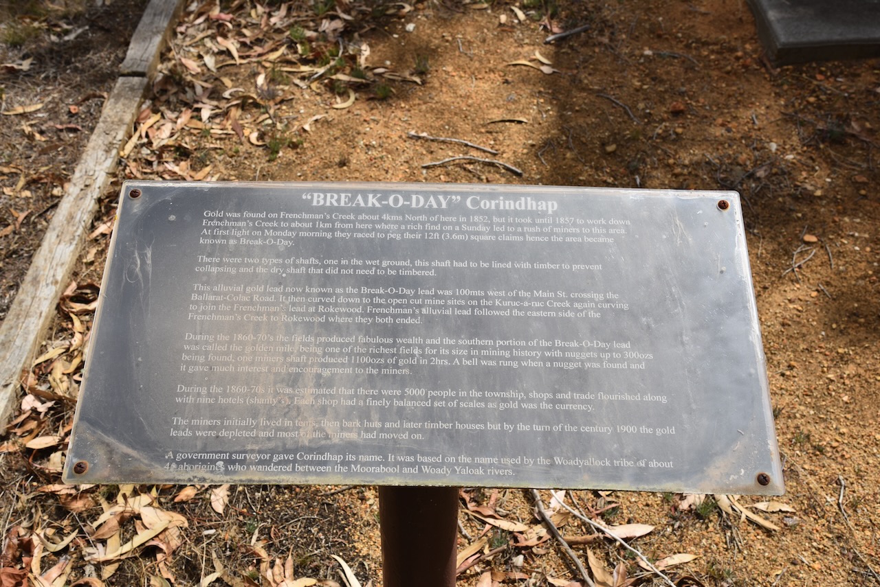 The town was established in 1852 after gold was discovered at Boundary Hill. It was initially known as Break O’Day. By 1857 the town had grown in population to about 5,000 people. The town had four hotels, three bakers, three tailors, two blacksmiths, two drapers, four butchers, two bootmakers, two grocers, two general storekeepers, a tobacconist, and numerous grog shanties. The town also had an Oddfellows Hall, two churches, and a school. The Post office opened on the 25th day of January 1868. It was known as Break O’Day until 1876 and was closed in 1993.