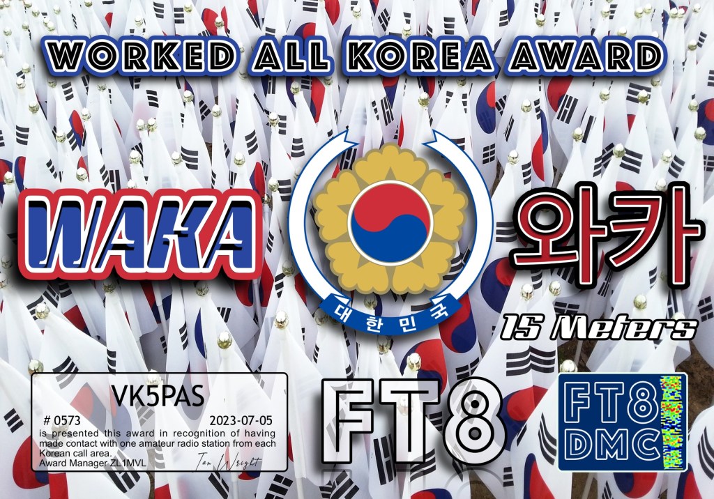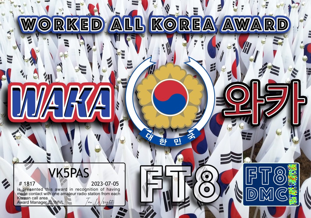 Thanks to all of the FT8 operators and thanks to the various award managers.