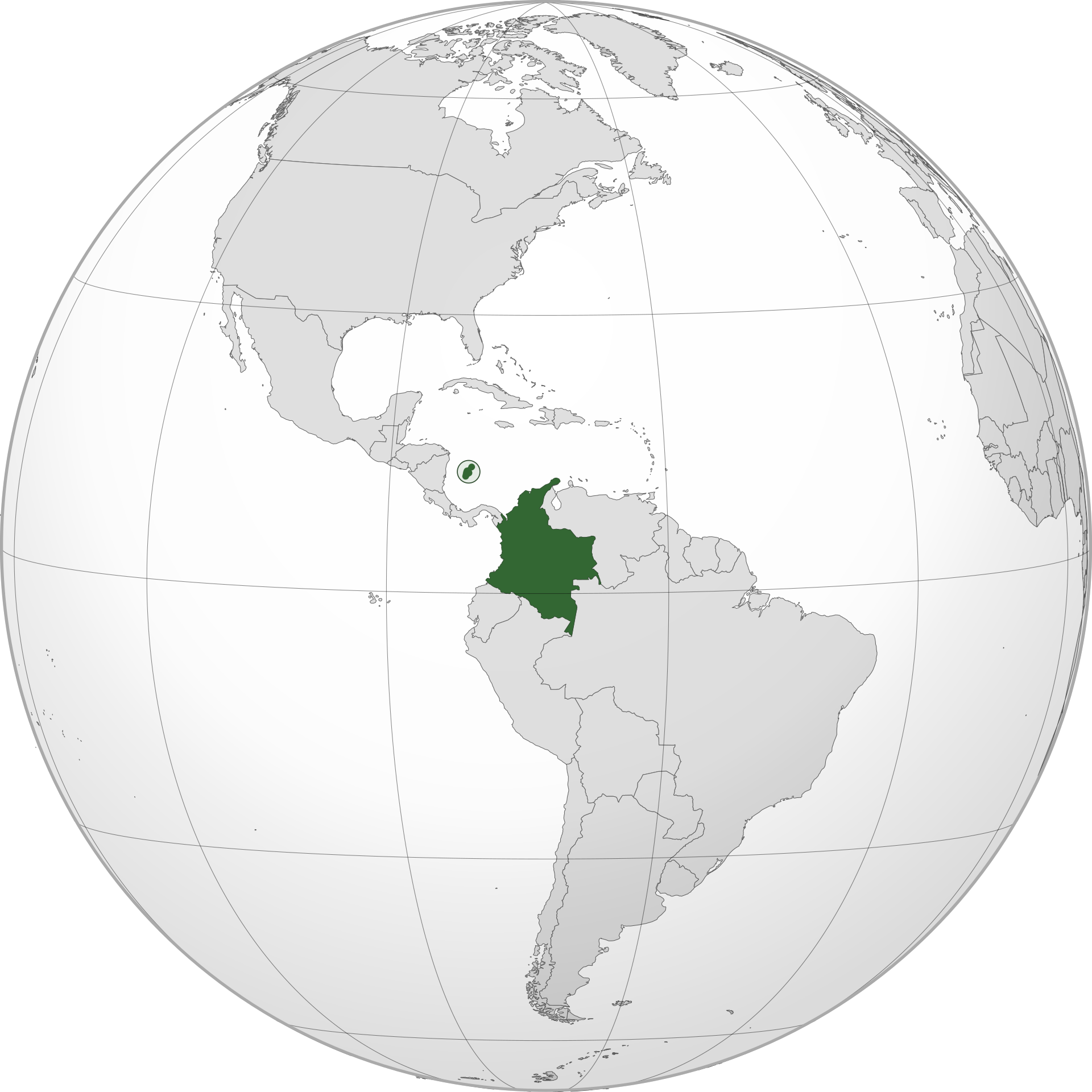 Above:- World globe showing the location of Colombia. Image c/o Wikipedia.