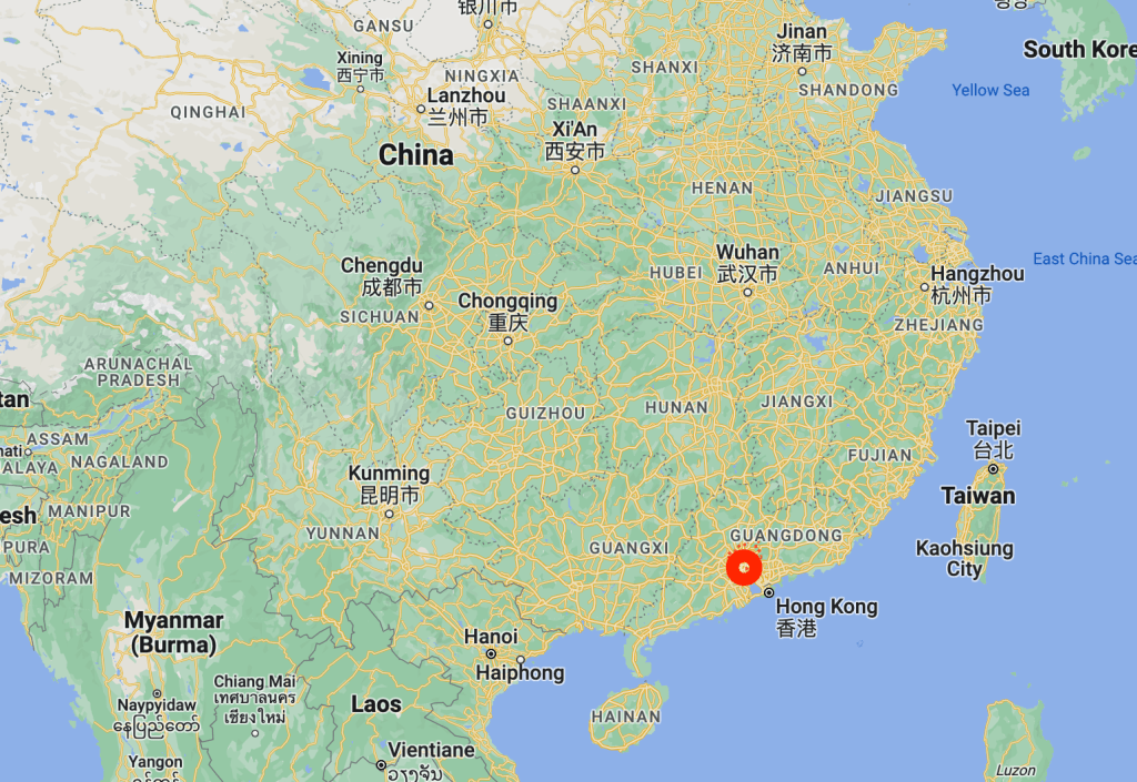 Above:- Map showing the location of Guangzhou China. Map c/o Google Maps
