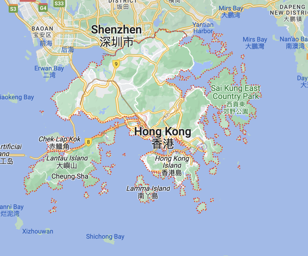 Above:- Map showing the location of Hong Kong. Map c/o Google Maps.