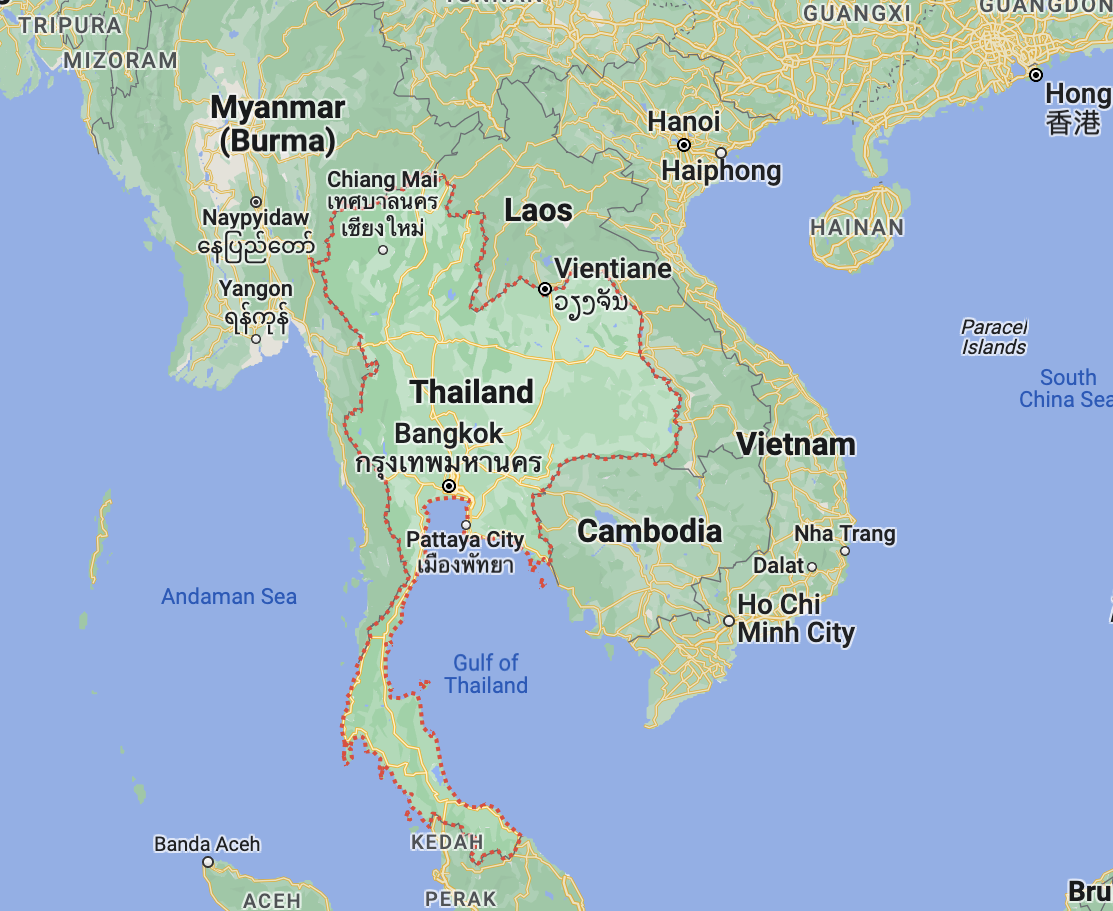 Above:- Map showing the location of Bangkok. Map c/o Google Maps.
