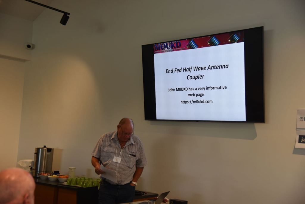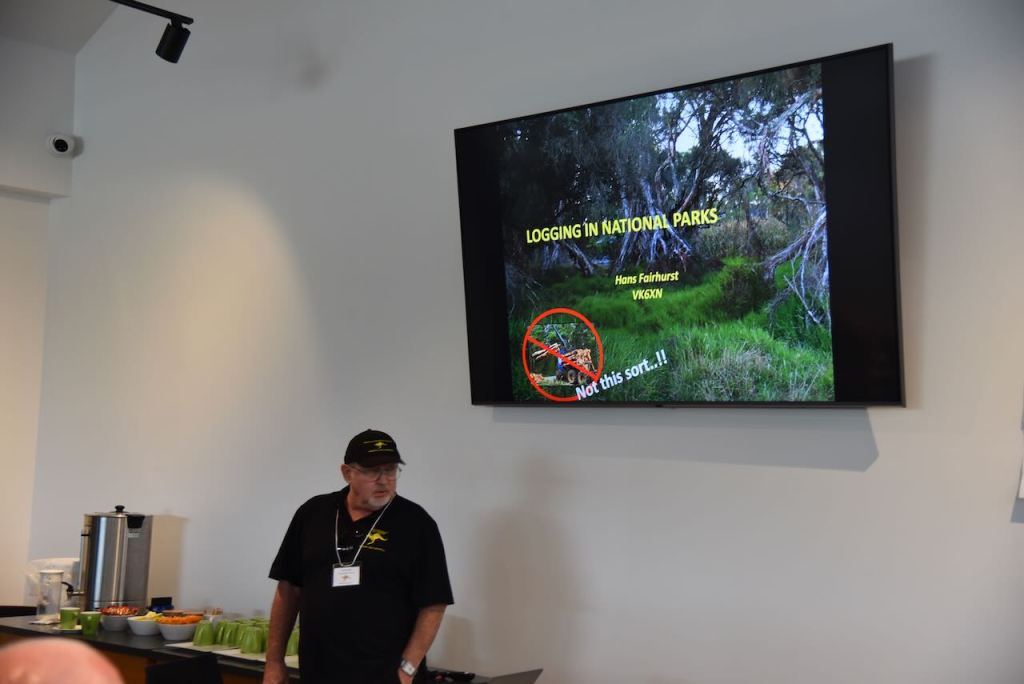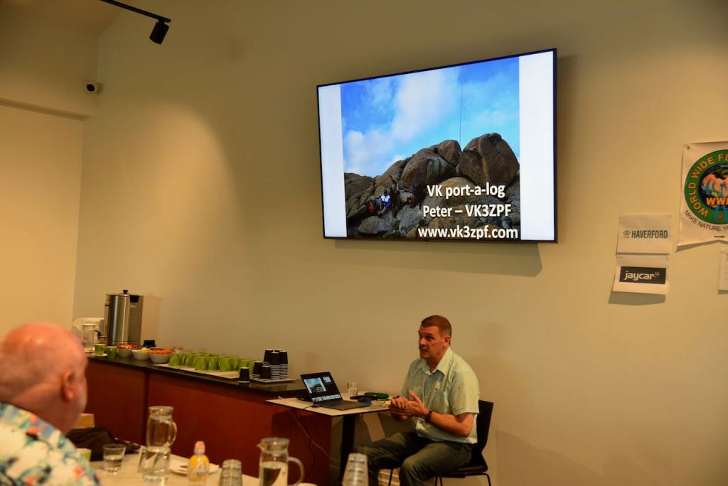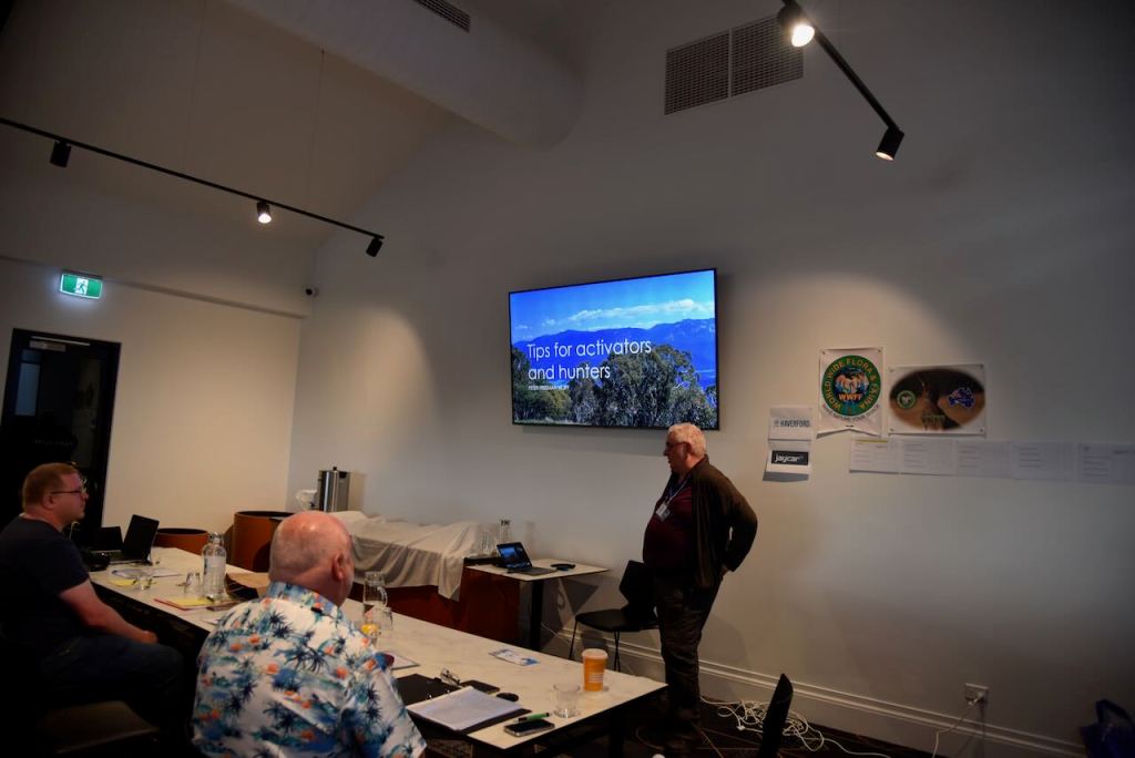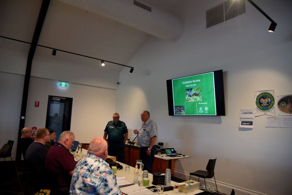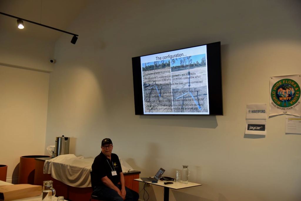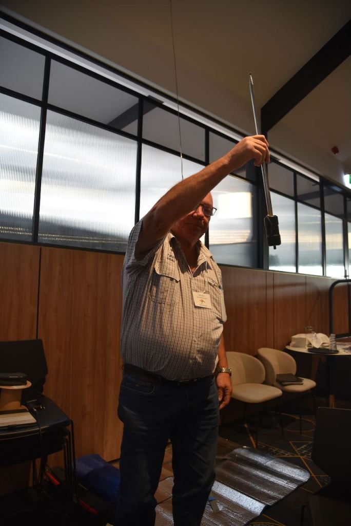 On Saturday there was a series of presentations in the Nanya Function Room at the Hotel Renmark. This included everything from an introduction to VKFF, a fly wire vertical antenna, VK-port-a-log, a home brew half wave antenna matching unit, and snake bite procedures.