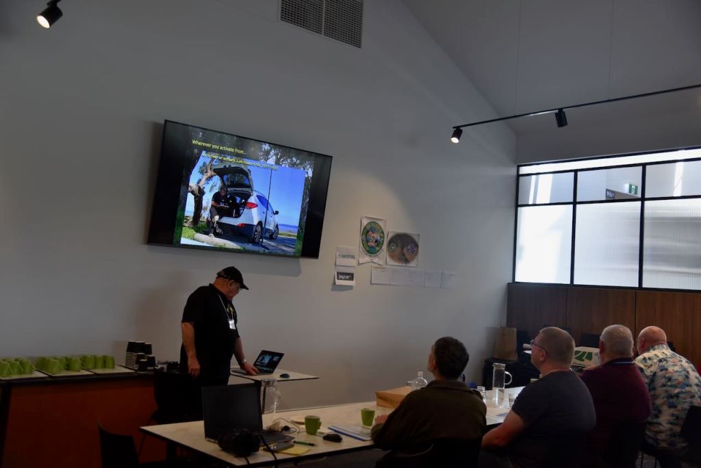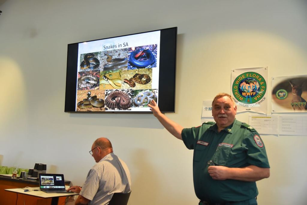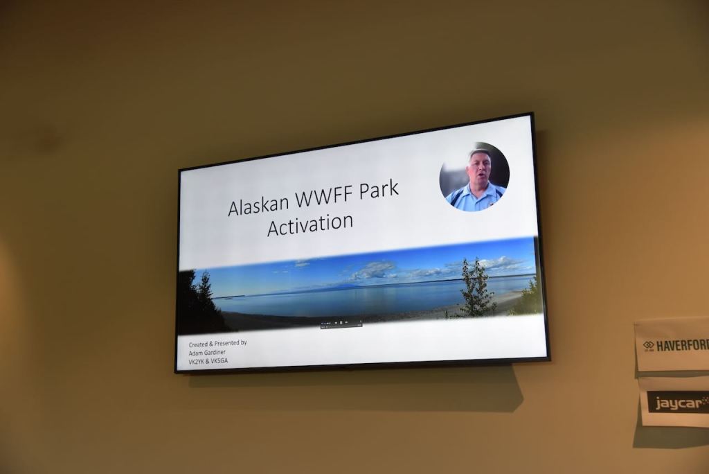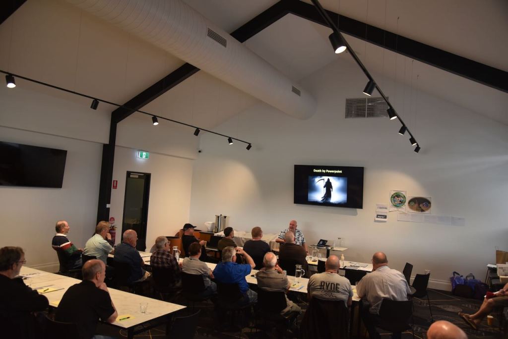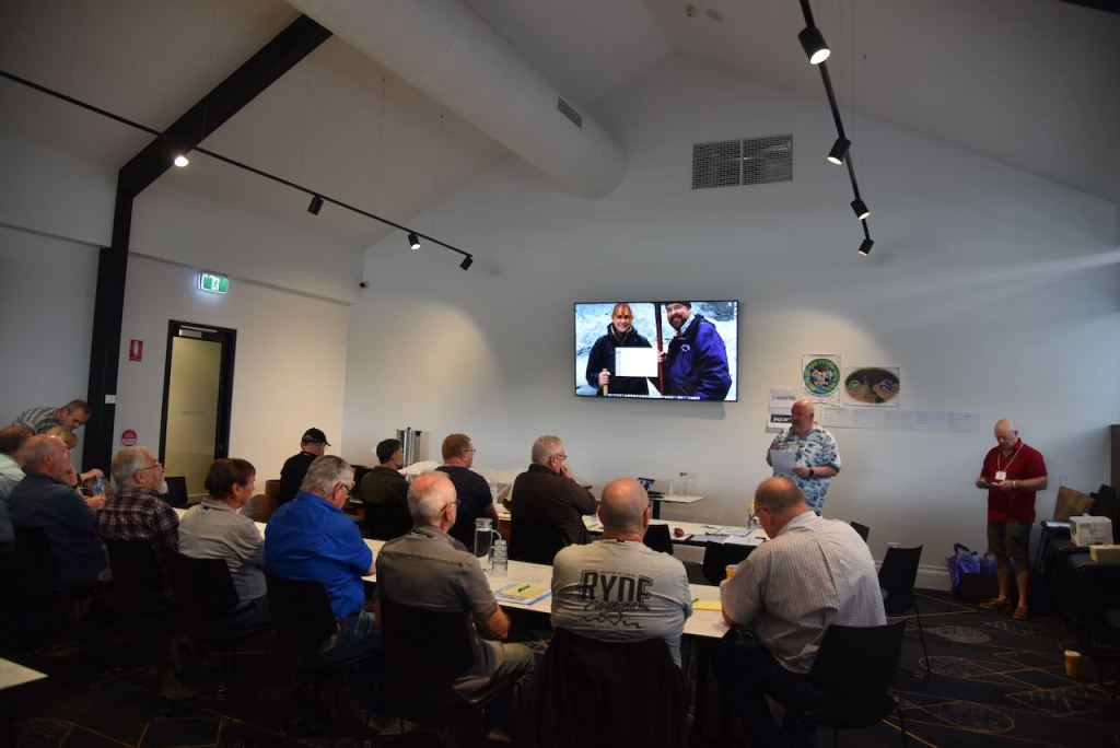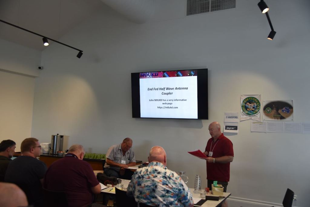 On Saturday there was a series of presentations in the Nanya Function Room at the Hotel Renmark. This included everything from an introduction to VKFF, a fly wire vertical antenna, VK-port-a-log, a home brew half wave antenna matching unit, and snake bite procedures.